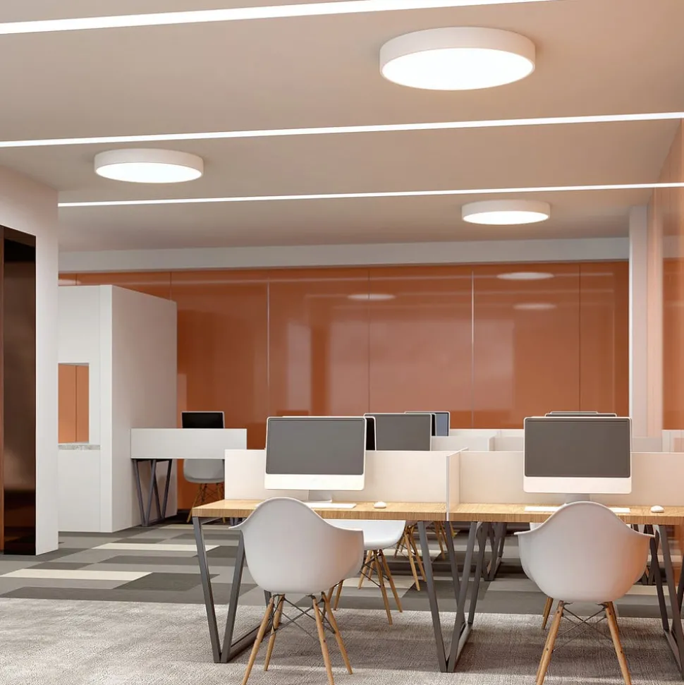 Rund, hvit LED-taklampe Noabelle med metallramme, lysfarge kan velges på forhånd Noabelle kjennetegnes av en enkel og allsidig design som kan brukes i mange ulike miljøer. Taklampen med integrerte LED-lamper og metallskjerm i hvitt har en rund, enkel design som gjør den spesielt diskret. Det er alltid en god anbefaling å bruke den, spesielt i moderne rom, fordi den minimalistiske designen alltid fremhever lysskapingen. LED-teknologien i taklampen kjennetegnes av høy lysstyrke og god effektivitet, slik at den runde armaturen i hvitt kan brukes til å skape mye lysstyrke, både hjemme og i et kommersielt miljø. Det faktum at lysfargen kan velges via en DIP-bryter før den endelige installasjonen av Noabelle, taler også for de ulike bruksområdene. Varmhvitt lys har en mer hjemmekoselig effekt, mens en universalhvit lysfarge er mer egnet for arbeid.