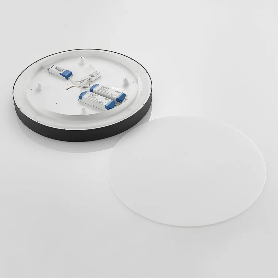 Svart, rund Vanida LED-taklampe med uplight- og downlight-funksjon for et vakkert allroundlys Vanida overbeviser med sin sorte aluminiumsramme som gir LED-taklampen et moderne utseende og en kjølig eleganse. Avdekningen er derimot laget av hvit akryl og gir Vanida et jevnt lys med en spesielt hjemmekoselig effekt. Den høykvalitets LED-takarmaturen gir et sterkt lys og passer derfor like godt på kjøkkenet som i gangen, på kontoret og i oppholdsrommet. Den har alltid en god virkningsgrad og sender lyset hovedsakelig nedover, men også litt oppover, slik at lysforholdene virker spesielt naturlige og garanterer en vakker allsidig belysning.