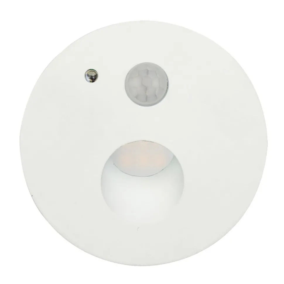Hvit LED-innfellingslampe Neru laget av aluminium i rund design med praktisk bevegelsessensor