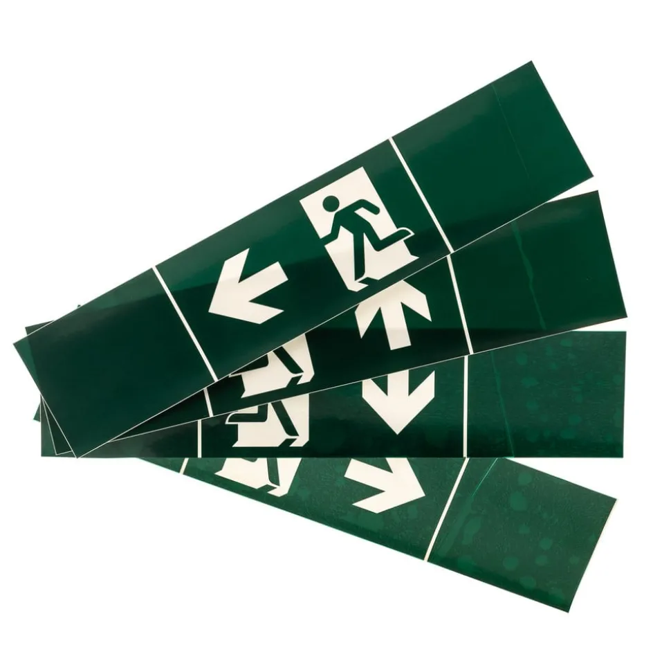 Nevian LED nødlys laget av plast i typisk grønn og hvit fargekontrast