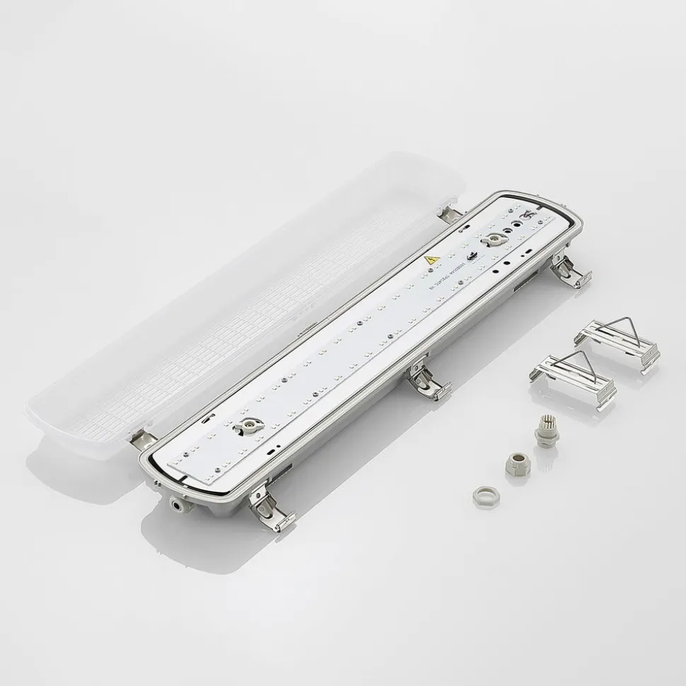 Spesielt i den kommersielle sektoren eller i fuktige rom rundt huset og gården, for eksempel garasjen eller en kjeller, er denne LED-badekararmaturen en virkelig ressurs når det kommer til skarp belysning. Med den høye kapslingsgrad kan smuss og fuktighet knapt påvirke diffusorarmaturen, og den egner seg derfor også i de rom hvor luftfuktigheten noen ganger kan være høyere. LED-ene viser seg å være spesielt effektive og sikrer tilstrekkelig lysstyrke med relativt lavt strømforbruk. Lyset deres er flimmerfritt og før installasjon kan du velge mellom tre lysfarger som kan velges med den integrerte DIP-bryteren. Takket være den høye graden av støtmotstand er Rao en av de spesielt robuste lysene.