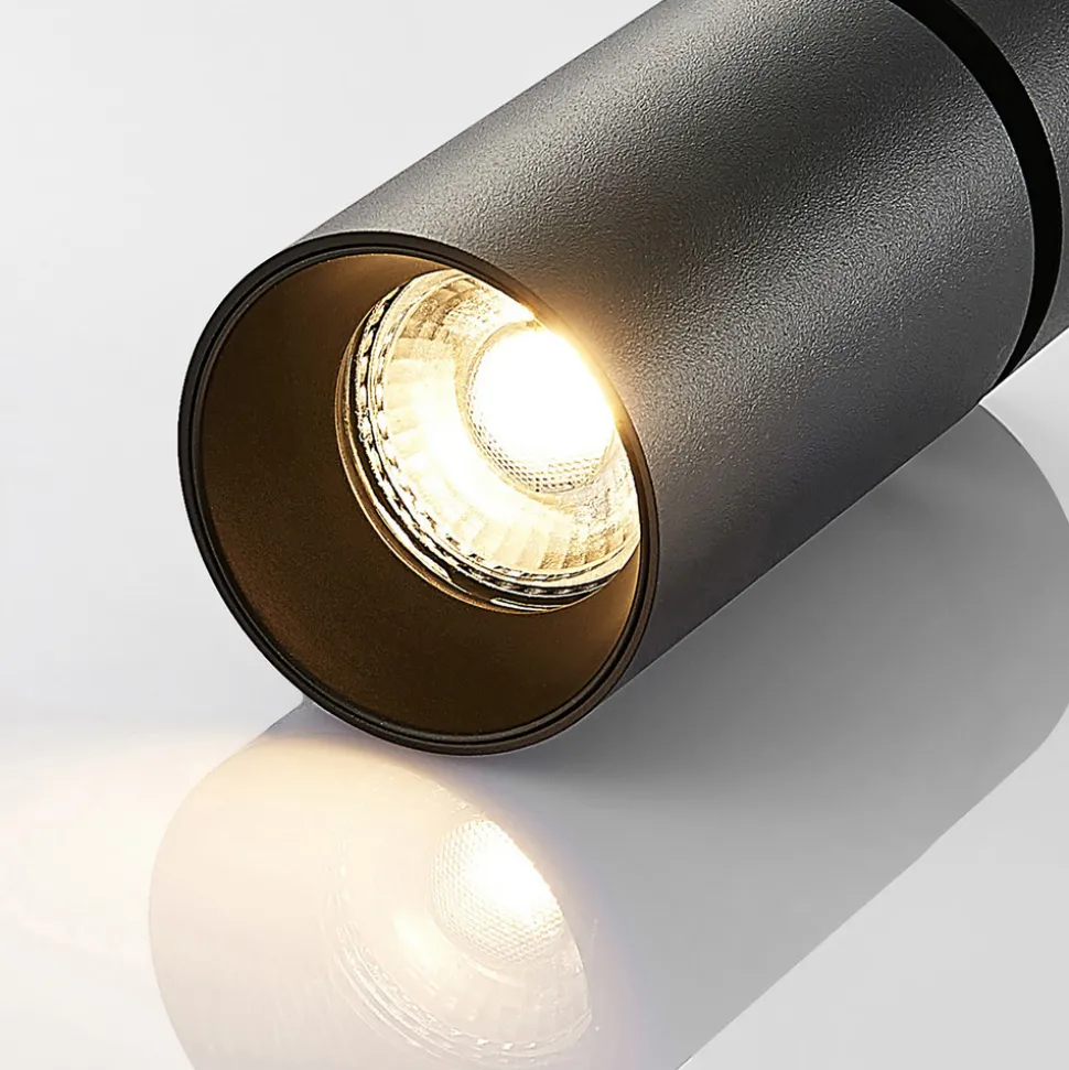 Brinja spotlight i svart i et praktisk sett med 3 stk. 1 lyskilde Brinja spotlight går rett til kjernen av lysstemningen. Den enkle taklampen imponerer med sin fleksibilitet og harmoniske design. Både skjermen og den runde holderen er behersket i størrelse og fokuserer i stedet på målrettet belysning. Armaturen kan dreies og justeres fleksibelt, slik at lyset alltid når frem til ønsket sted og matcher resten av belysningskonseptet. Den blanke, svarte fargen og den lette aluminiumsvekten gjør armaturen enda tydeligere.