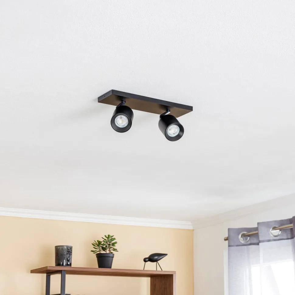 Svart spotlight med 2 lyskilder og justerbare skjerm
