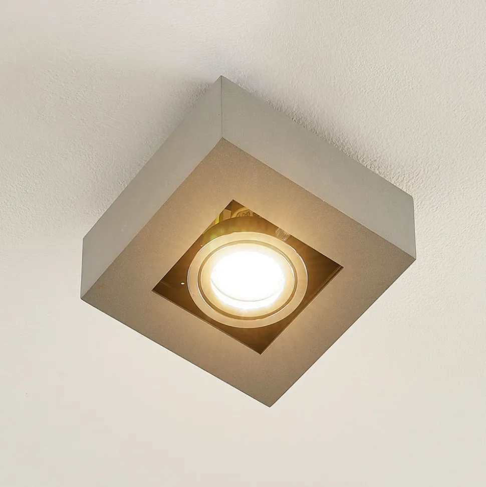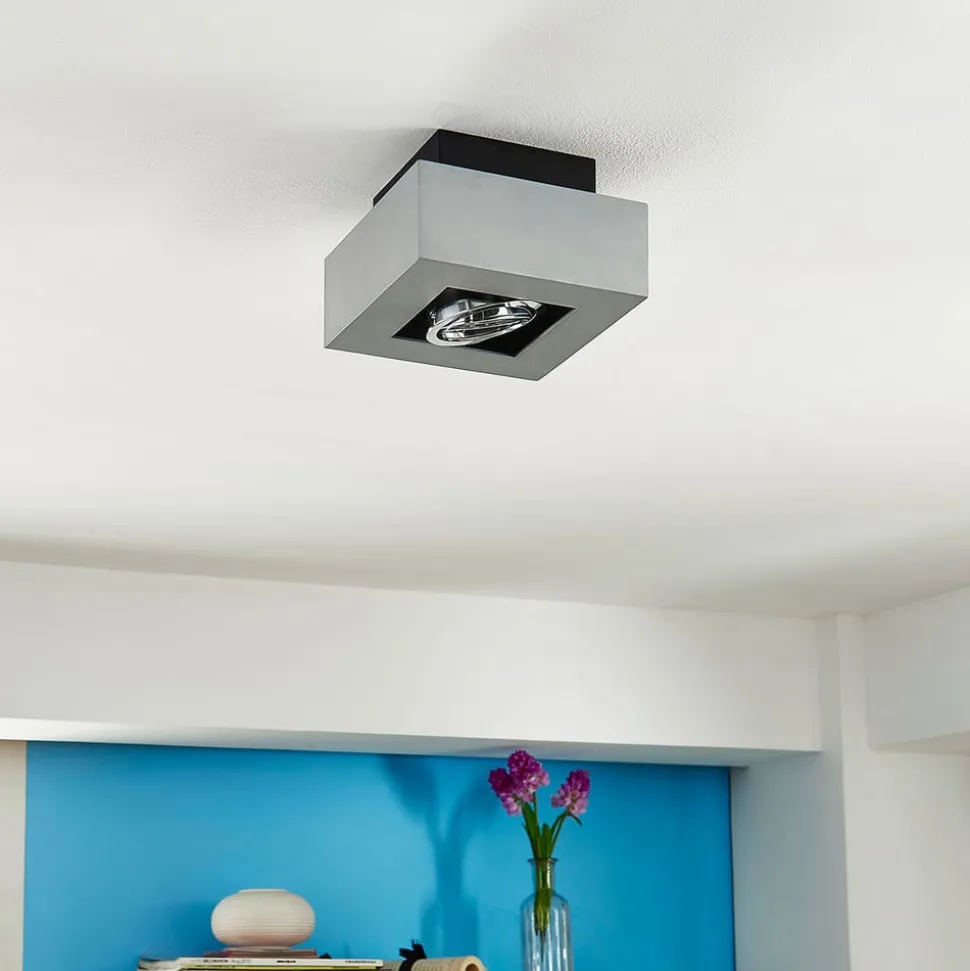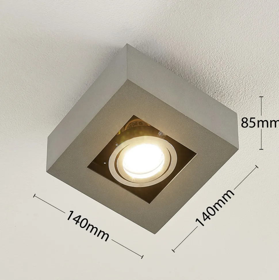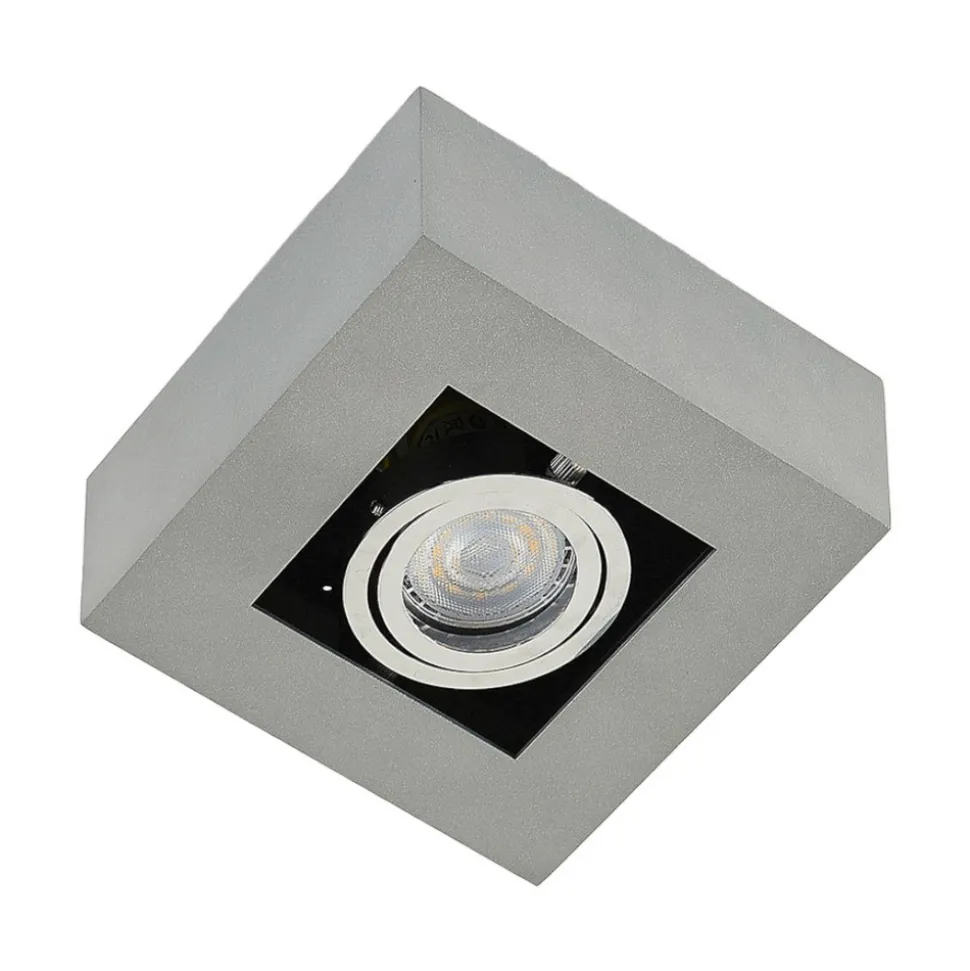 Vince kvadratisk taklampe Med sin ganske lille størrelse er denne taklampen også egnet for mindre rom, eller flere av taklampene kan installeres for å lyse opp store områder. Vince-armaturen er laget av aluminium med en sølvgrå finish. Takket være den moderne designen og den nøytrale fargen passer den perfekt inn i mange ulike boligstiler. Taklampen drives med en GU10 LED-taklampe.