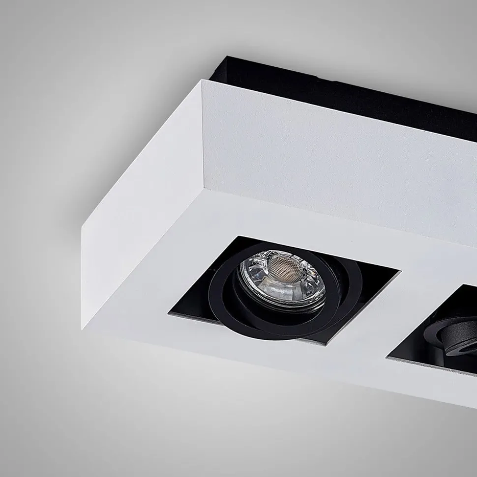 Hvit Vince taklampe med to svingbare lyskilder Vince taklampe er tydelig definert av sin lineære form og har en moderne, minimalistisk design som passer både til privat og kommersiell bruk. Fargeskjemaet på metallhuset er bevisst valgt for å være enkelt, slik at armaturen lett kan integreres i ulike interiører. Takket være de svingbare lyskildene kan lysretningen endres etter ønske, slik at et bestemt område i rommet eller en bestemt gjenstand kan fremheves på en stilfull måte. GU10-fatningen kan utstyres med energibesparende LED-pærer, som kan bestilles som tilbehør.