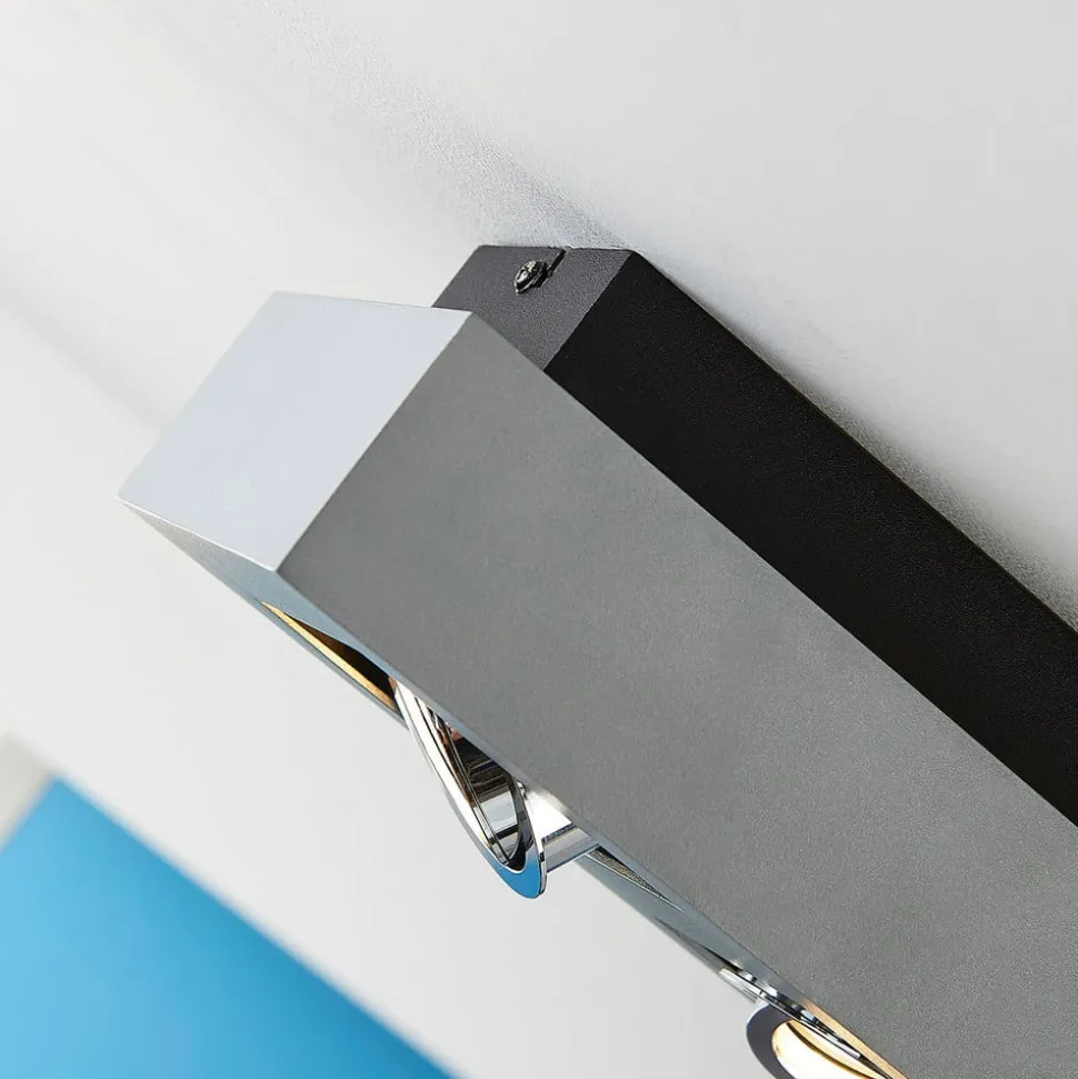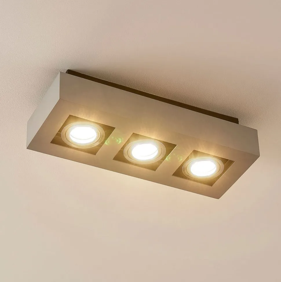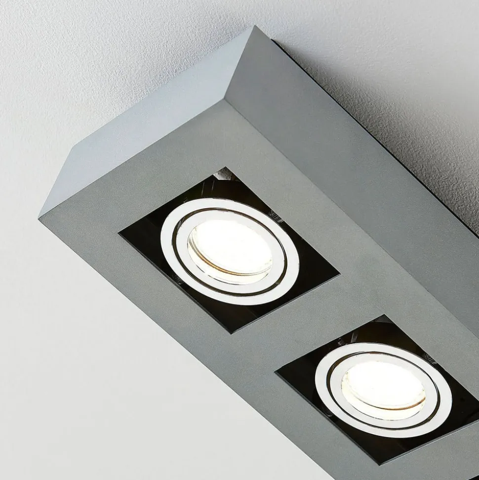 Vince – downlight med tre GU10-uttak Vince har svingbare lyskildeinnsatser slik at man kan oppnå et mer individuelt tilpasset lysbilde som oppfyller kravene på stedet. Armaturen kan utstyres med GU10-lyskilder. Den kantete rammen på downlighten er laget av aluminium, som er lakkert sølvgrå og derfor har et tidløst utseende – med høykvalitets, skruefri hurtigkoblingsklemme (holdbar, sikker og verktøyfri fjærmekanisme)
