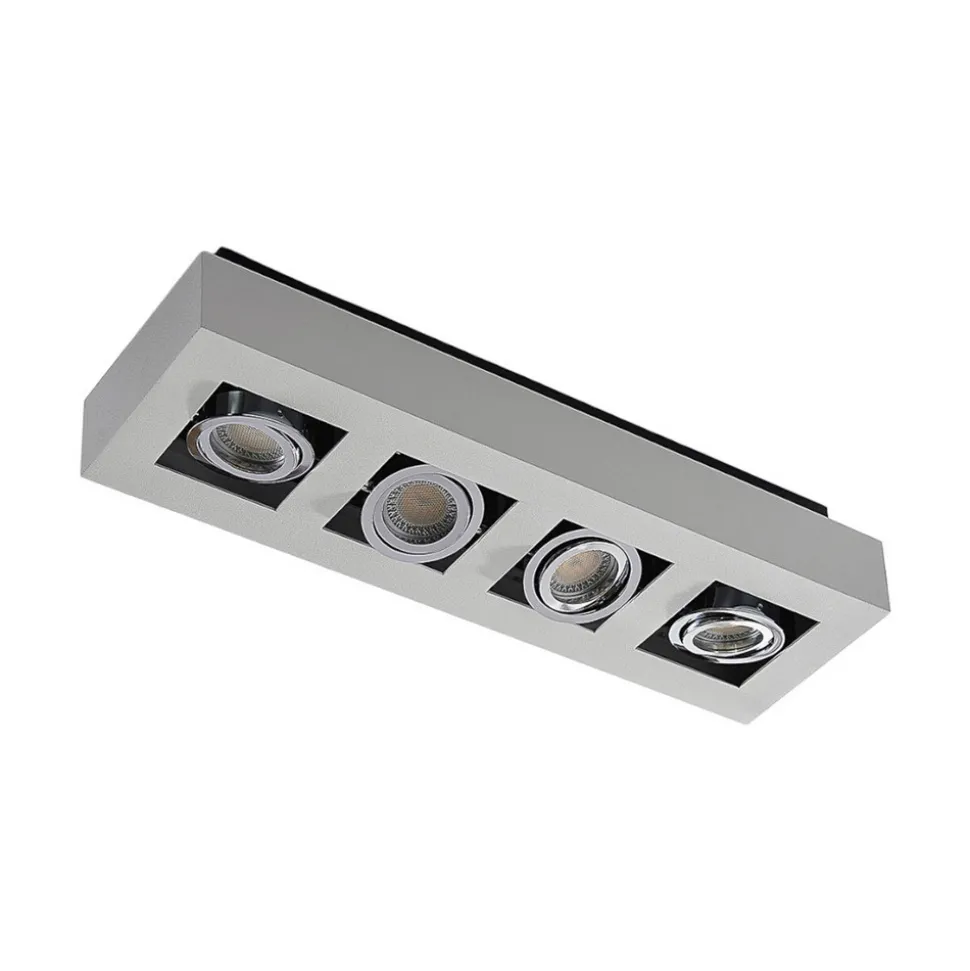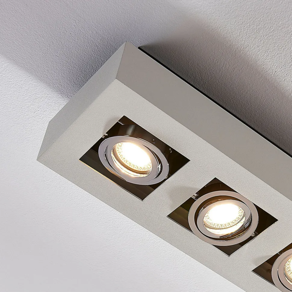 Vince 4 lyskilder med hvit metalloverflate Vince er en taklampe med et moderne, diskret utseende som drives med LED-taklamper med GU10-sokkel. Dette gir et lavt strømforbruk uten at det går på bekostning av lysstyrken. Taklampen er ideell for bruk på kjøkkenet eller er en passende lyskilde for gangen. I den hvite rammen er det plassert totalt fire lampeinnsatser, og alle kan svinges slik at lysretningen kan varieres – med skruefri hurtigkoblingsklemme av høy kvalitet (holdbar, sikker og verktøyfri fjærmekanisme)