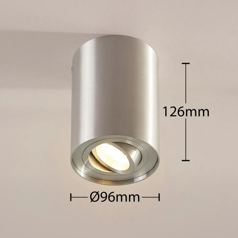 Aluminiumsfarget takspot Jolina i en enkel, rund form – i et praktisk sett med 2 stk Jolina er en takspot som passer til moderne interiør av alle slag og har et enkelt utseende som lyskilde med et funksjonelt uttrykk. Takspotten består av en rund, sylindrisk aluminiumskropp med børstet overflate. Lyskildeinnsatsen er svingbar, slik at den kan beveges opptil 25° for bedre justering av lysretningen – med høykvalitets, skrueløs hurtigkoblingsklemme (holdbar, sikker og verktøyfri fjærmekanisme) – leveres i sett med 2 stk