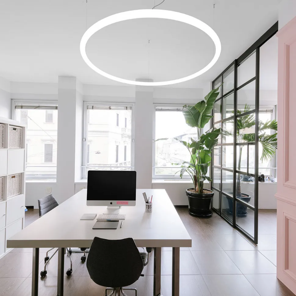 Alphabet of light sirkulær LED-pendel som kan styres via en app Med moderne design og innovativ lysteknologi står Alphabet of light LED-pendelen i sentrum. Den inneholder en optoelektronisk og mekanisk prosess som er utviklet og patentert av Artemide, og som gir et diffust lys som skaper en lys og behagelig rombelysning. Alphabet of light kan også styres via smarttelefon eller nettbrett: Det er bare å laste ned den gratis Artemide-appen – kompatibel med iOS eller Android – og så er du i gang. Alphabet of light er en del av en serie belysningselementer som består av lysende tall og bokstaver, sirkulære og lineære lys og er utviklet av BIG – den anerkjente Bjarke Ingels Group. Denne gruppen av designere og arkitekter, som blant annet står bak det danske sjøfartsmuseet, er blitt kjent utenfor Danmarks grenser for byggeprosjekter som Shenzhen Energy Mansion i Kina, Færøyenes utdanningssenter, Vancouver House Tower og 57th West, et boligkompleks med 750 leiligheter på Manhattan. Den italienske designbelysningsprodusenten Artemide har implementert BIGs design på en velprøvd og høyt kvalifisert måte.
