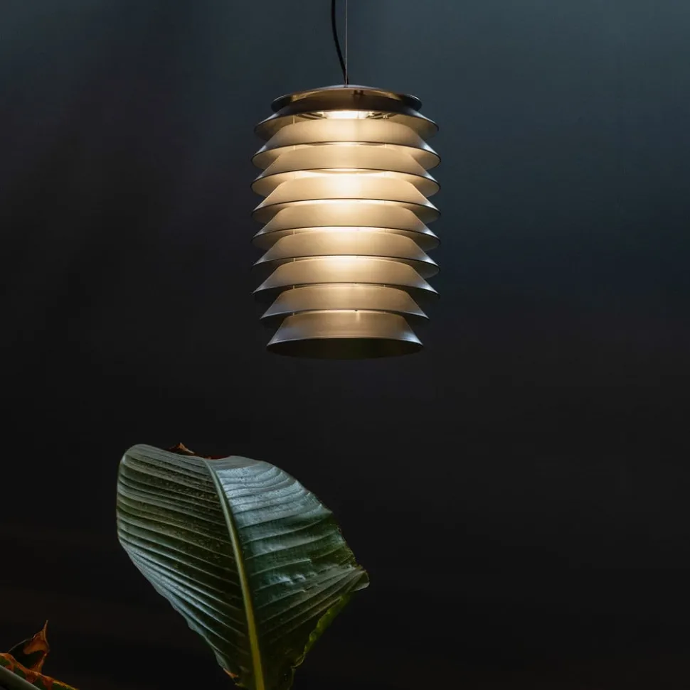 Slicing LED-pendel – behagelig allroundbelysning for uteområder Lamelldesignet i aluminium kjennetegner både utseendet og lyseffekten til Slicing LED-pendel. På innsiden er det integrert en LED-lyskilde som avgir et behagelig varmhvitt lys med god fargegjengivelse (CRI 90). Lamellene skjermer lyset fra sidene og lar det trenge indirekte inn i omgivelsene gjennom spaltene. Slicing er ideell for undergrunnsbaner, uteserveringer og foajeer i hotell- og næringsbygg. Pendelarmaturen er designet av Bjarke Ingels Group. Denne internasjonale sammenslutningen av designere og arkitekter er dedikert til progressiv bygg- og byutvikling. Artemide, en anerkjent italiensk produsent, er ansvarlig for produksjonen av pendellampen.