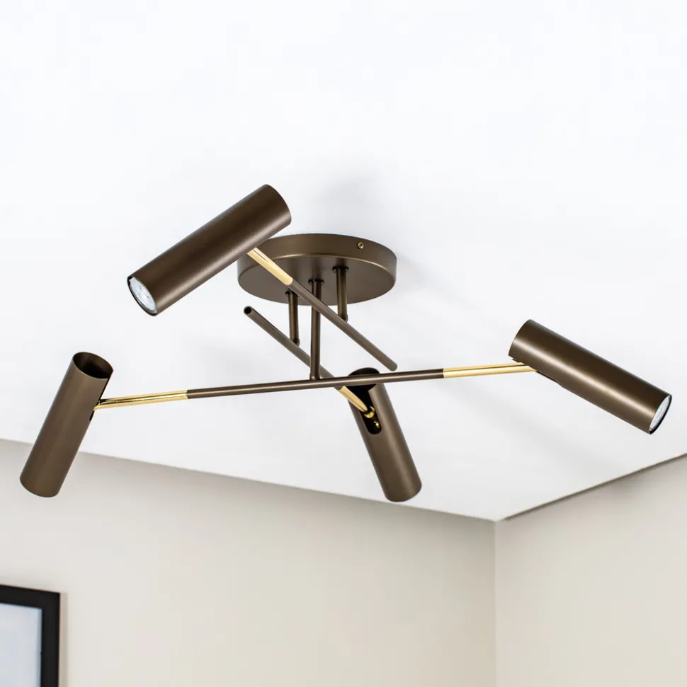 Axion taklampe: titan-gullfarget eleganse til stue og gang Opplev hvordan fire titanfargede spots i stål gir en moderne estetikk til rommene dine med Axion taklampe. Denne europeiskproduserte belysningsløsningen kombinerer stil og funksjonalitet og er ideell for bruk i stue og gang. Selv om det ikke følger med en dimmer, kan Axion enkelt kombineres med en ekstern dimmer for å justere lysstyrken etter ønske og tilpasse atmosfæren i rommet ditt.