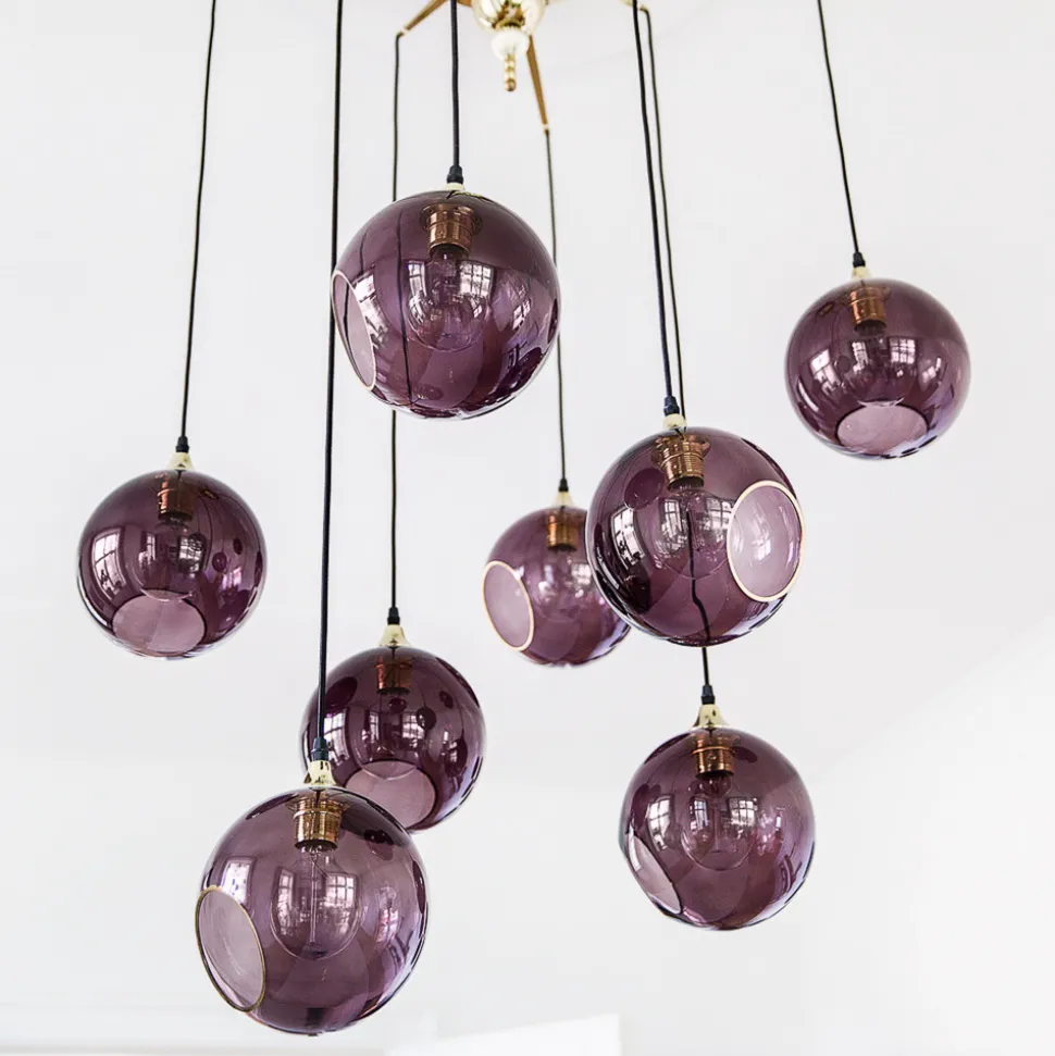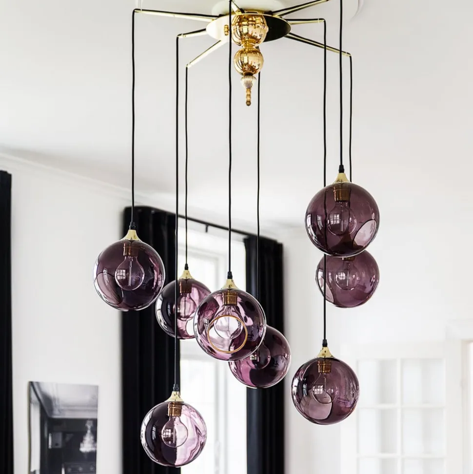 Fleksibel tilpasning: Flash Your Lamps Deluxe-baldakin i jern for opptil 8 pendellamper Flash Your Lamps Deluxe-baldakin er et justerbart opphengssystem for opptil åtte pendellamper. Den er laget av lakkert jern og prydes av et iøynefallende ornament i midten. Armene i ulike lengder kan tas av og plasseres etter ønske for å skape et individuelt uttrykk. Produsenten DESIGN BY US anbefaler spesielt å bruke den sammen med sine egne pendler fra seriene Ballroom og New Wave, men mange andre pendler kan selvsagt også iscenesettes elegant med dette opphengssystemet. Merk: Det er kun baldakinen som følger med. De avbildede lampene er ikke inkludert i leveransen.