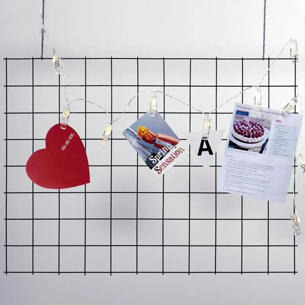 Denne lyslenken med sine 10 opplysbare klyper er ideell for å vise fem bilder eller postkort. Takket være de batteridrevne lysklyper som sitter 15 cm fra hverandre på den 165 cm lange kabellen, kan denne brukes overalt innendørs i huset. Takket være den integrerte tidtakerfunksjonen slås lyset automatisk på og av igjen etter en viss tid, slik at det ikke er nødvendig å bytte manuelt.