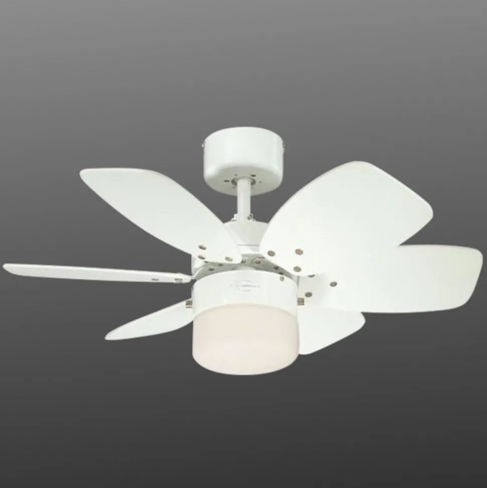 Også små rom trenger behagelig inneklima både sommer og vinter. Med Flora Royale er dette ikke noe problem: Takventilatoren med seks rotorblad sørger for passende luftsirkulasjon som dessuten reduserer fyringskostnadene om vinteren. Den integrerte opalglasslampen genererer i tillegg nødvendig belysning. Flora Royale kan oppgraderes med fjernkontroll (denne bestilles under tilbehør). Forlengelsesstang er inkludert.