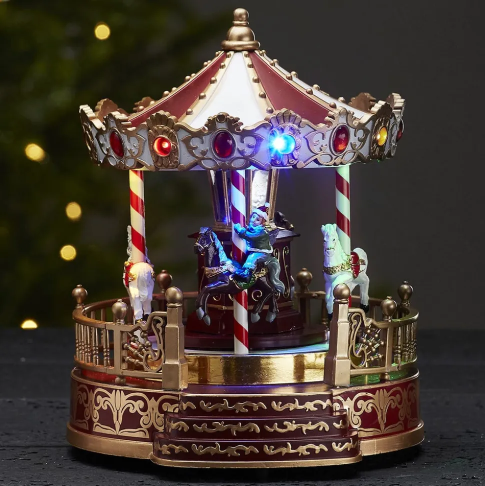 Dekorlampen Kidsville får deg til å drømme deg bort til julemarkedet. Den lille karusellen er ikke bare utstyrt med animasjon, men spiller i tillegg åtte melodier.