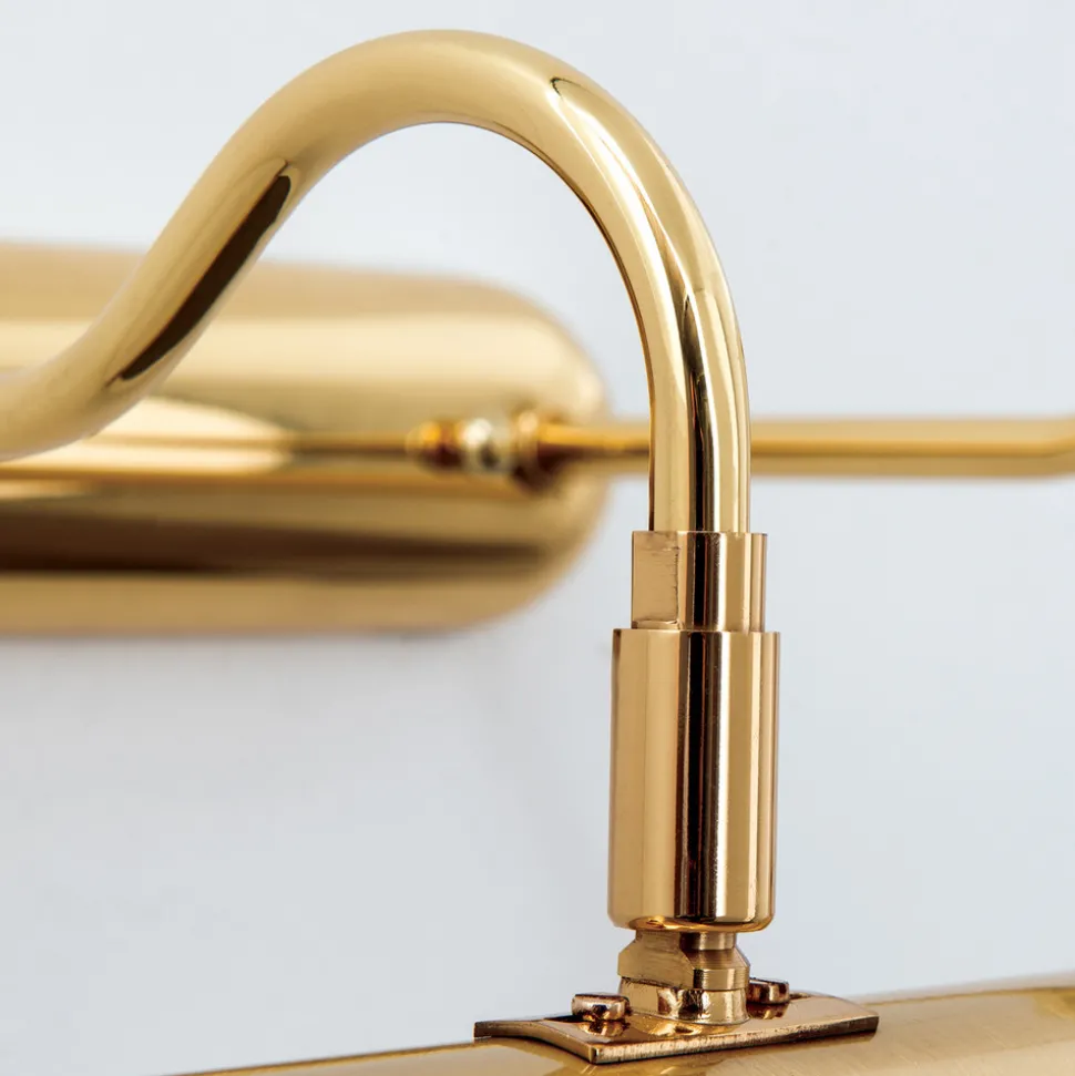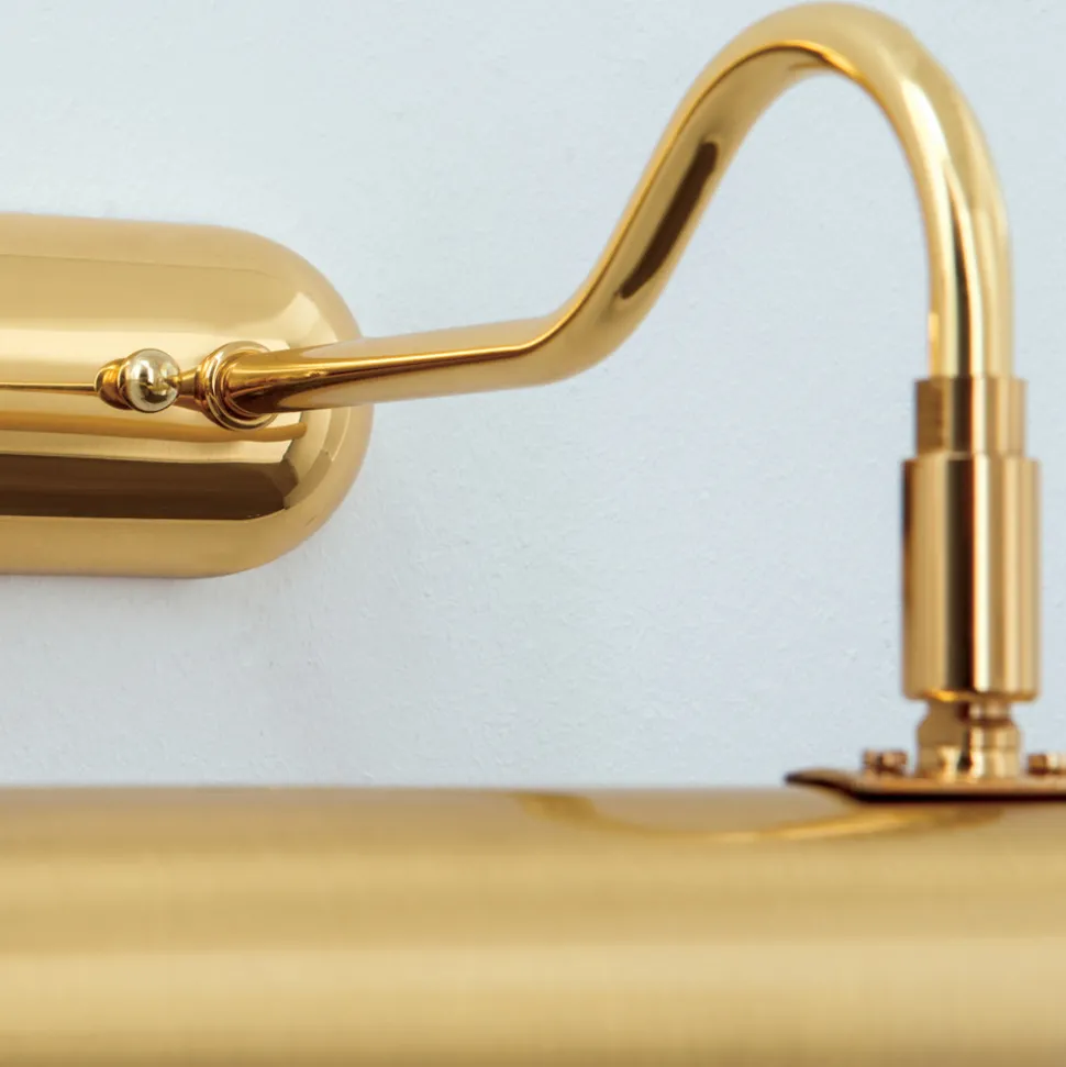 Bildelampen Lariga er helt produsert i metall med en matt messingfinish. En polering for hånd gir den siste finpussen. Med en lengde på 70 cm gir den ikke bare perfekt belysning av kunstverk på veggen, men også en behagelig omgivelsesbelysning som er ønskelig i alle rom. Lariga passer til mange interiørstiler takket være sin enkle eleganse.