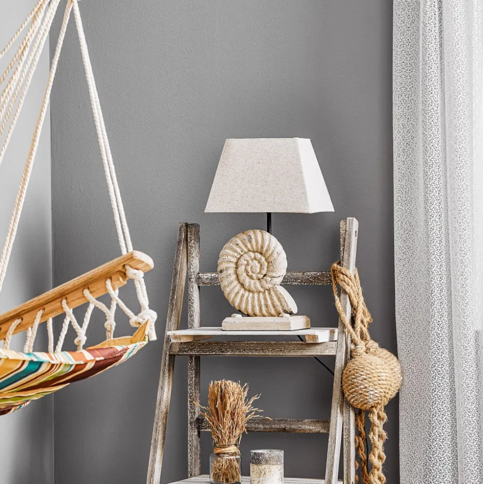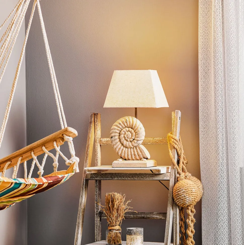Bordlampen Conchiglia kombinerer stilig eleganse med et snev av maritim stil. Den dekorerte lampesokkelen tiltrekker seg oppmerksomhet med sitt kunstneriske design og gir hvert rom et spesielt preg. Kombinasjonen av tekstil og plast sørger for en harmonisk blanding av materialer som både er vakre og funksjonelle. De milde fargene i sand og beige passer perfekt inn i ulike romkonsepter og skaper en beroligende atmosfære.