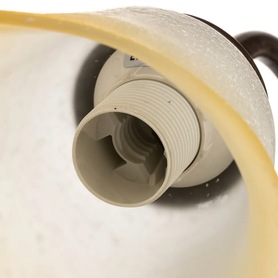Bordlampen Lucrezia kombinerer rustikk sjarm med florentinsk eleganse og blir dermed et stilig høydepunkt i ethvert rom. Den er laget av høykvalitets jern og glass og imponerer med sin antikke bronsefinish, som harmonerer perfekt med den kremhvite blomsterskjerm. Denne kombinasjonen av materialer og farger gir lampen et tidløst uttrykk som skaper en behagelig atmosfære både i stuen, soverommet og spisestuen.