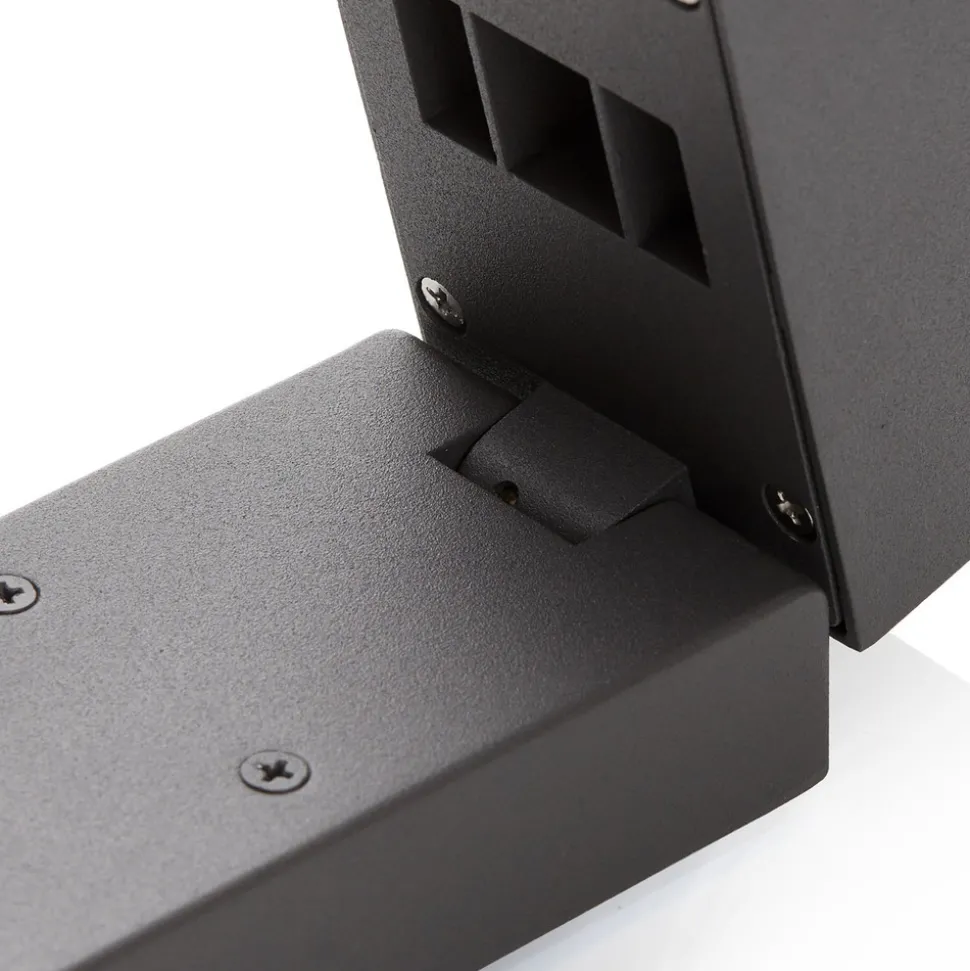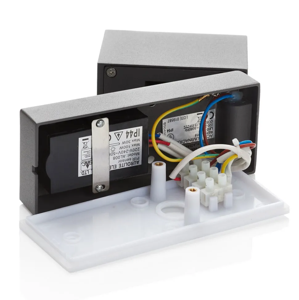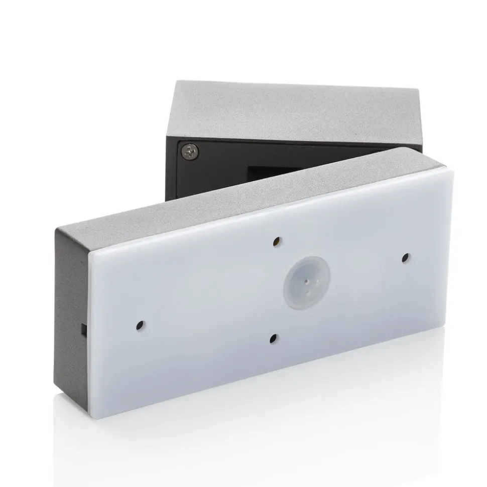 Cala LED-veggspotlight med integrert bevegelsessensor Cala er en liten, men effektiv LED-veggspotlight med lampehode som kan svinges 90° i horisontal retning, og som med sine varmhvite, integrerte LED-lamper garanterer energibesparende belysning. I den kantete veggfesten er det integrert en bevegelsessensor som registrerer bevegelse på opptil 8 meters avstand og slår lyset på automatisk. Avhengig av valgt lysvarighet sørger LED-lampene for lysstyrke og dermed sikkerhet, og slås automatisk av igjen etter den innstilte tiden (valgbar fra 10 sekunder til 4 minutter). Med integrert skumringssensor.