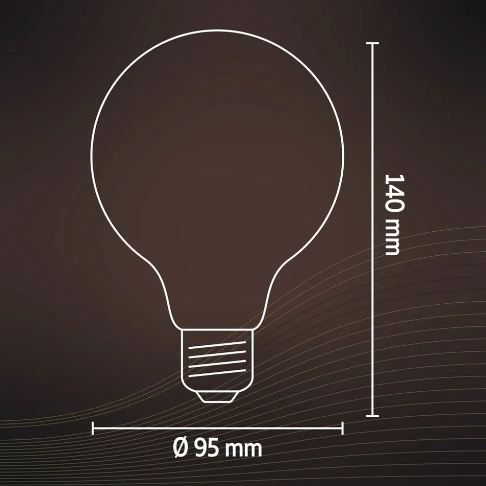 LED globe-lampe E27 3,8W G95 med LED-glødetråder i spiralform, dimbarMed en fargetemperatur på 2100 K er lyset fra denne LED globe-lampen med gullfarget glass og dekorative LED-glødetråder i spiralform spesielt varmt og koselig. Lampen er perfekt for bruk i skjermløse armaturer i alle områder der det er ønskelig å skape hygge med et veldig varmt lys. Lyset kan også dimmes via LED-dimmer (ikke inkludert).
