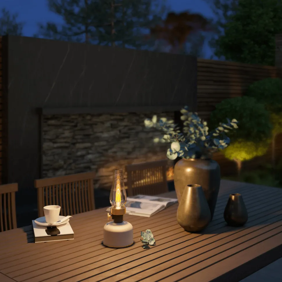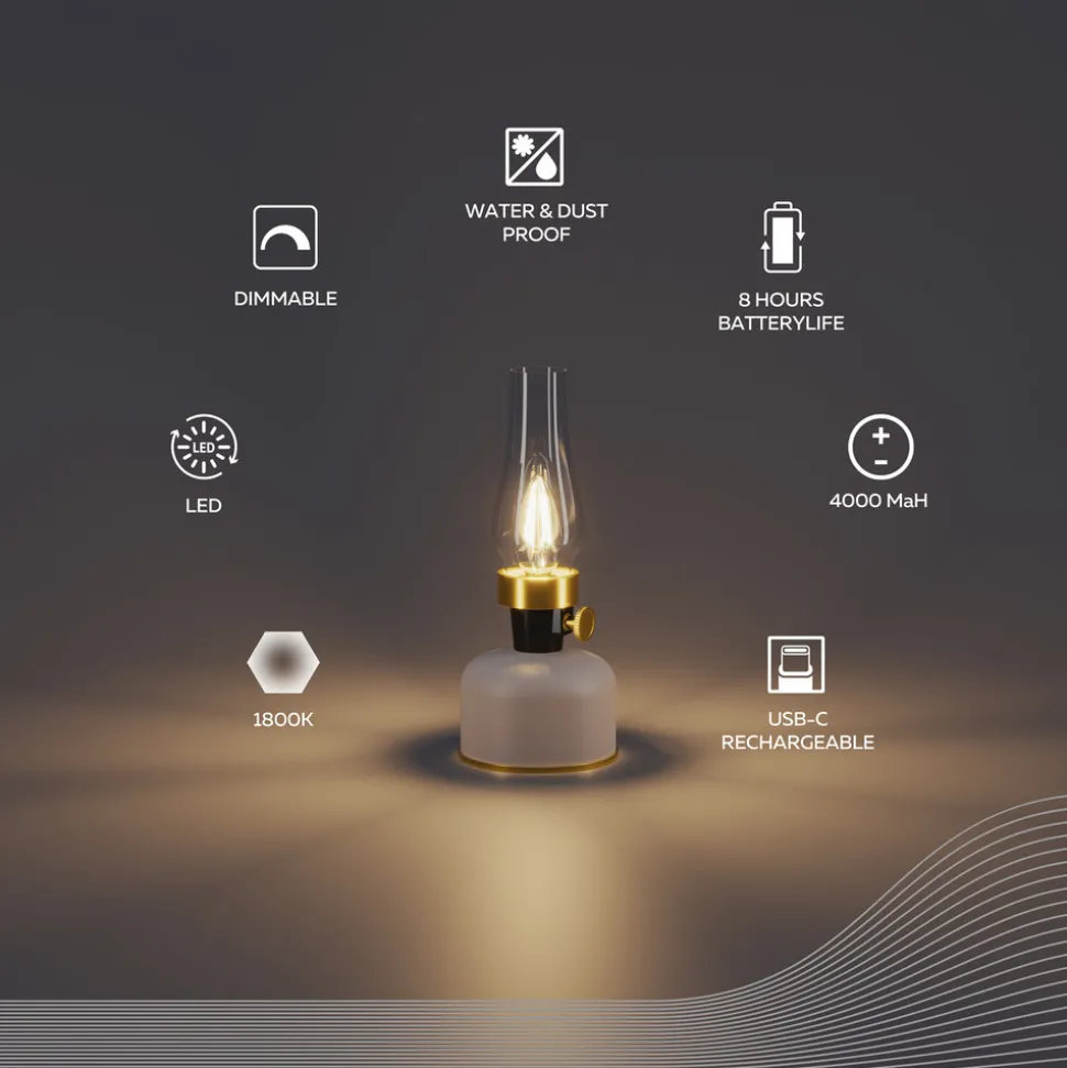 Batteridrevet LED-bordlampe Lavinio i oljelampe-design