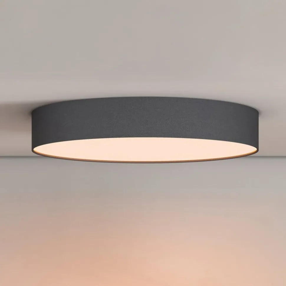 Kan styres via app eller med stemmekommandoer: Smart Fabric LED-taklampe med tekstilskjerm, CCT, RGB Den moderne Smart Fabric LED-taklampen er utstyrt med en mørk tekstilskjerm, som sørger for at bare et subtilt lysskjær spotlightes opp i taket. Derimot sendes lyset direkte og kraftig nedover. SMD-lysdioder er integrert som standard og montert bak en plastdiffusor som sørger for blendingsfri belysning. Lysfargen kan stilles inn i mer enn 100 fargenyanser eller hvitt lys (3 000 K – 6 500 K). Lysintensiteten kan også dimmes trinnløst. Alle funksjoner kan styres via Calex-appen ved hjelp av WLAN-tilkobling eller stemmekommandoer. Tekniske funksjoner/kompatibilitet – Kan styres via Calex-appen (gratis for Android og iOS) – Over 100 lysfarger og justerbart hvitt lys: varmhvit (3000 K) – dagslys (6500 K) – Timer og forhåndsinnstilte scener kan stilles inn via appen – Stemmestyring mulig med Amazon Alexa, Google Assistant og Siri Shortcuts – Dimbar via app eller stemmekommando – WiFi 2,4 GHz