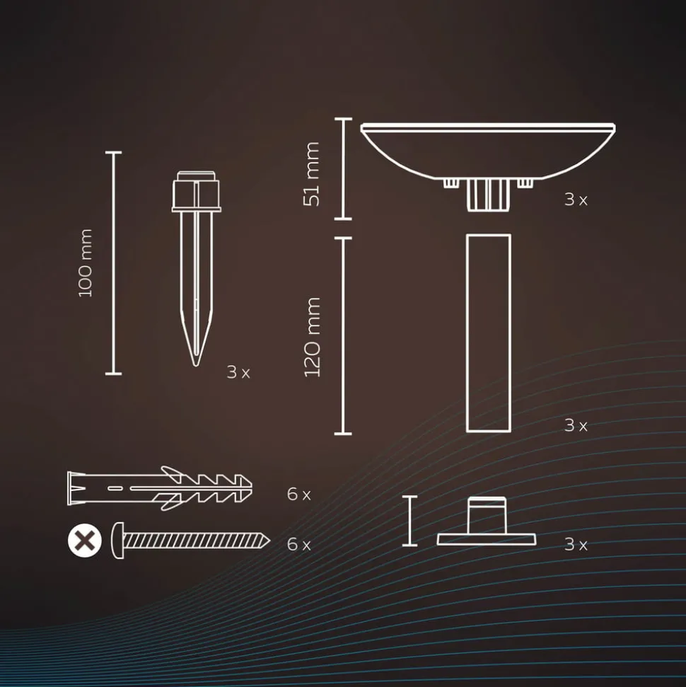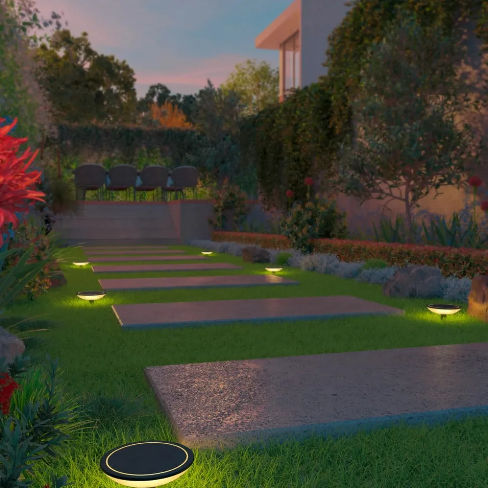 Kan styres via app: Smart Outdoor Pathlight utendørs dekorasjonslampe inkludert jordspyd i et sett med 3 stk, CCT, RGB, dimbar Den tredelte Smart Outdoor Pathlight utendørs dekorasjonslampe er svært fleksibel når det gjelder installasjon. De medfølgende stativføttene kan brukes til montering på bakkenivå, eller du kan bruke de medfølgende jordspydene. I begge tilfeller kan lysene monteres direkte eller heves ved hjelp av de medfølgende forlengelsene. Smart Outdoor Pathlight leveres med strøm via en støpsel og er ideell som et tredelt orienteringslys i kanten av en sti i hagen. En Calex Smart Outdoor Link Bluetooth Mesh Gateway er nødvendig for å utnytte fordelene med intelligent lysstyring. Denne kan kjøpes separat som tilbehør. Ettersom gatewayen kobles til via WLAN, kreves det også et eksisterende WLAN-nettverk. Gatewayen kobles deretter til Smart Outdoor Pathlight i uteområdet via Bluetooth og muliggjør styring via en gratis app. Det er mulig å velge mellom over 100 fargerike lysfarger og ulike hvittoner (3 000 K – 6 500 K). I tillegg kan denne utelampen dimmes på denne måten, og det er også mulig å stille inn tidtakere og forhåndsinnstilte scener. Tekniske funksjoner/kompatibilitet: – Kan styres via Calex-appen (gratis for Android og iOS) – Over 100 fargede lysfarger og justerbart hvitt lys: varmhvit (3.000 K) – dagslys (6.500 K) – Timer og forhåndsinnstilte scener kan stilles inn via appen – Stemmestyring mulig med Amazon Alexa, Google Assistant og Siri Shortcuts – Dimbar via app eller stemmekommando Merk: En Calex Smart Outdoor Link Bluetooth Mesh Gateway (se tilbehør) og et eksisterende Wi-Fi-nettverk er nødvendig for intelligent lysstyring.