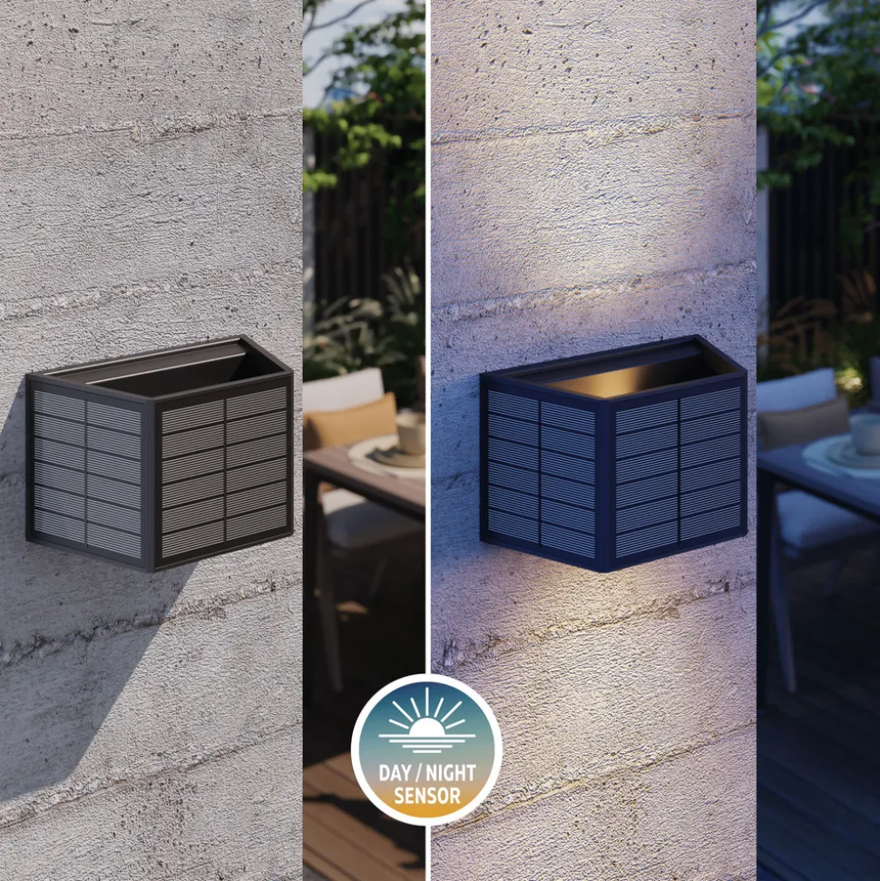 Calex Caserta vegglampe drives helt av solenergi og lader seg selv opp om dagen – for stemningsfull belysning om kvelden uten strømkostnader. Ideell for fasader, gjerder og hagemurer.