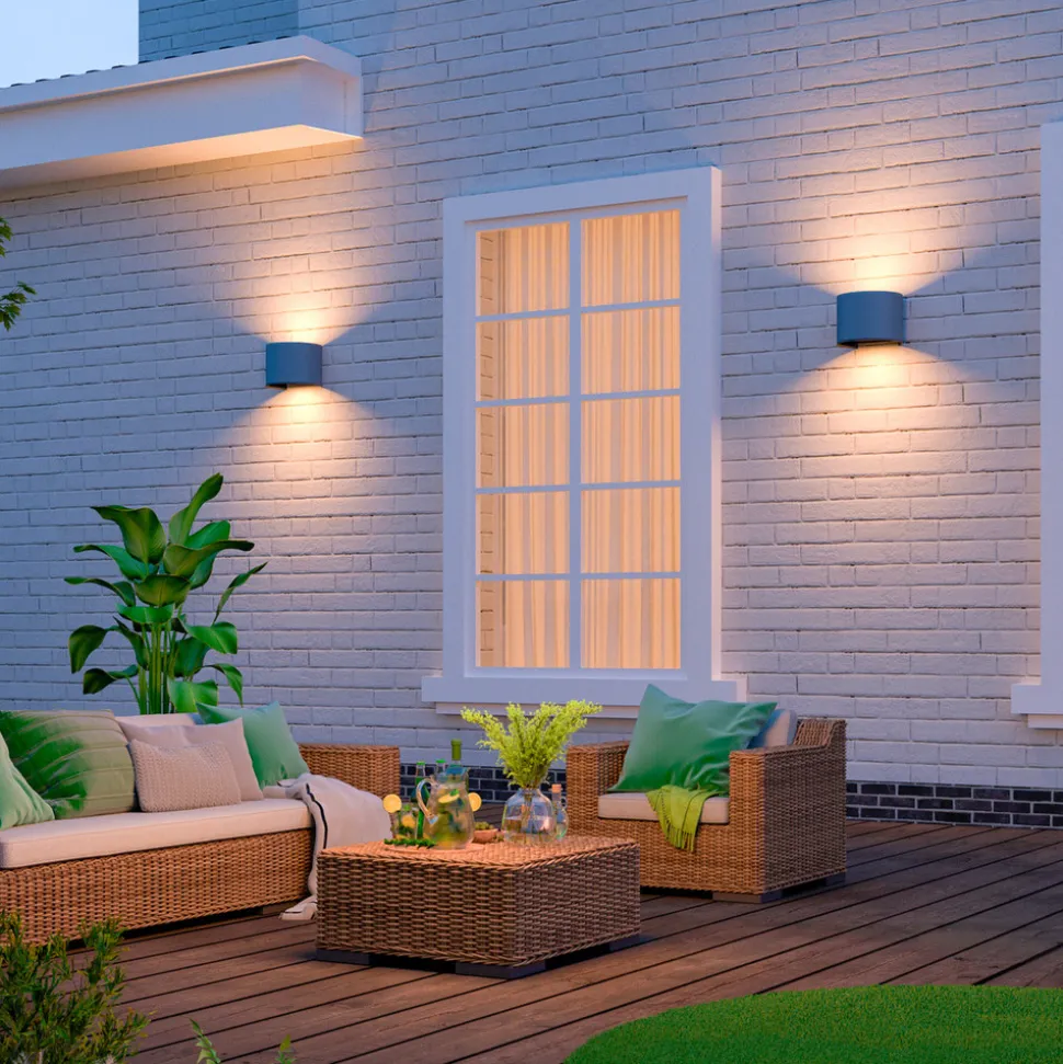 Halvrund utendørs LED-vegglampe Oval, lyser oppover og nedover