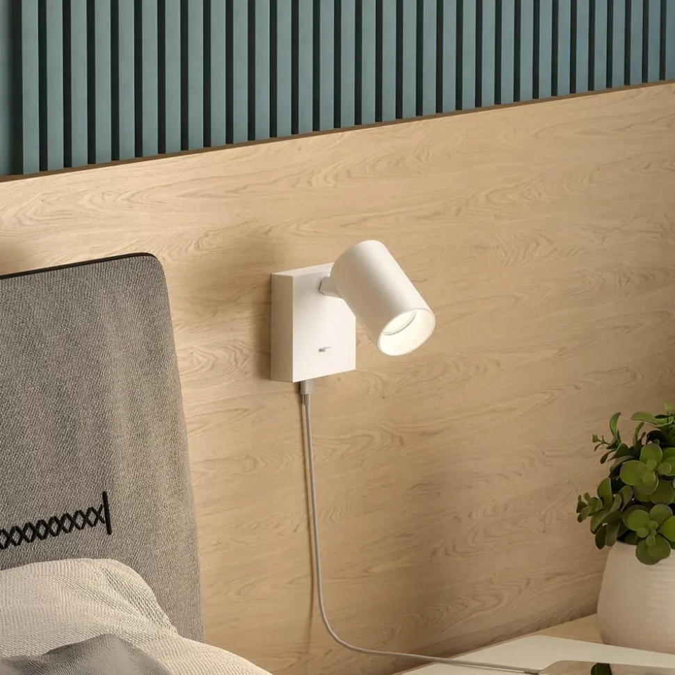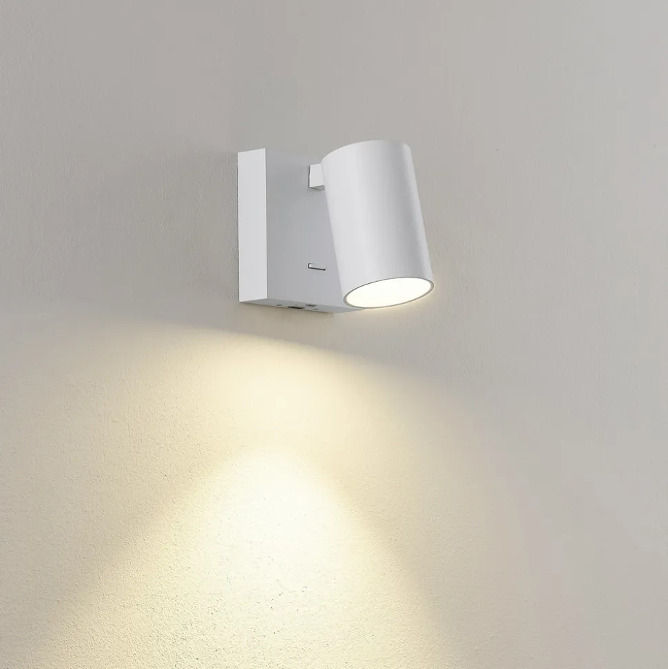 CAN TILT veggspot, hvit, 10 x 10 cm, metall, bryter, USB