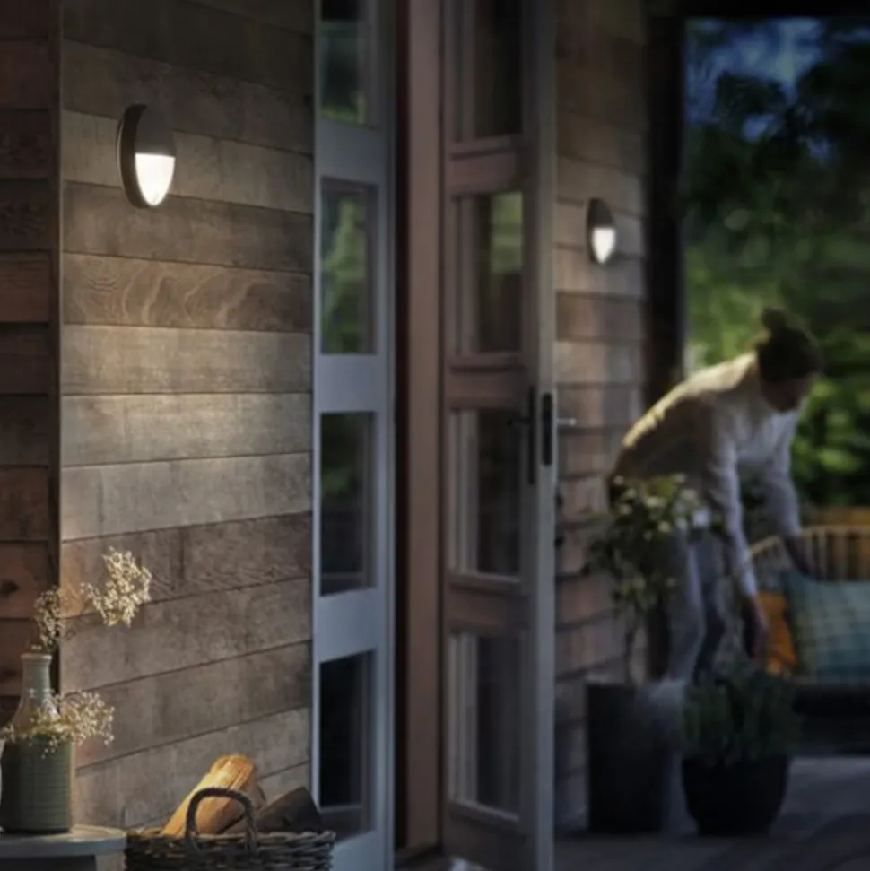 Høykvalitets utevegglyset Capricorn belyser akkurat området som trenger lys, for den er ikke bare et vanlig utelys men utstyrt med en infrarød bevegelsessensor. Denne sørger for at lyset slås automatisk på så snart noen nærmer seg. Dessuten er det kuppelformede, runde Designet en optisk attraksjon på husfassaden. De monterte LEDene gir et varmhvitt lys som lyser jevnt uten å blende i området som trenger belysning. Med rundt 25.000 driftstimer er de fastmonterte LEDene dessuten robuste med lang levetid.