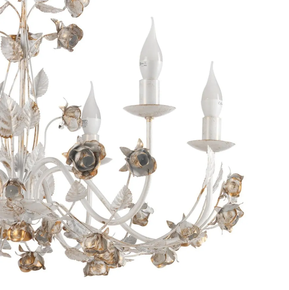 Carolina lysekrone, elfenbensfarget, 6 lyskilder, jern
