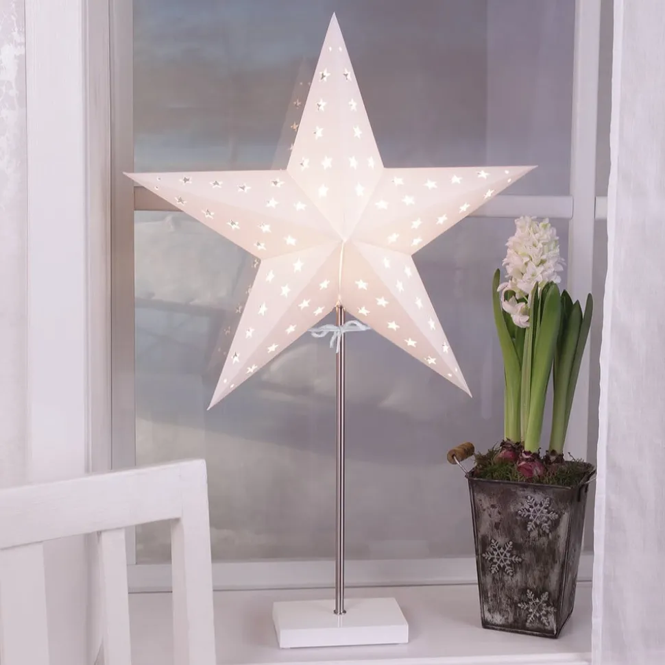 Combi pack: Denne dekorasjonslampen med stjerneskjerm blir til en flott bordlampe i det skjermen byttes ut