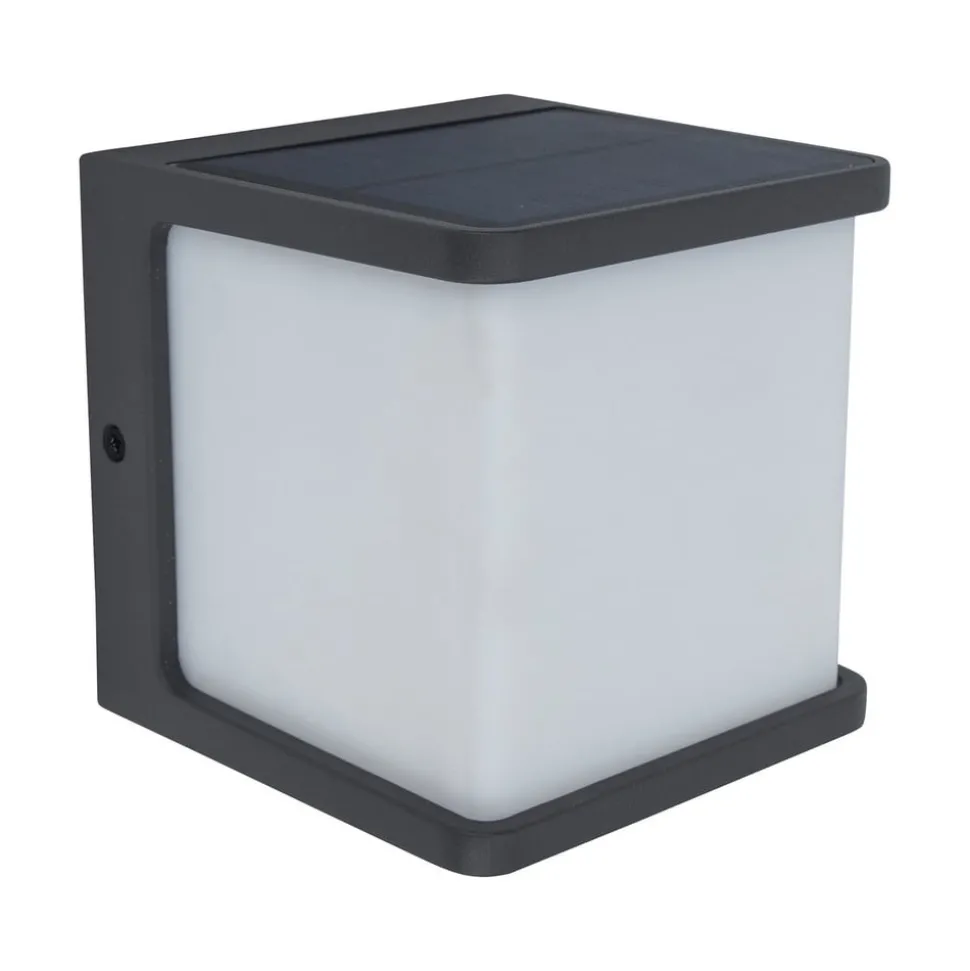 Til tross for sin kompakte og ganske usmykkede design, viser Doblo LED utendørs vegglampe seg å være spesielt praktisk. Et solcellepanel over lampen genererer strøm fra sollys, som lagres i et batteri. En bryter brukes til å velge mellom fire moduser, og aktiverer dermed den integrerte bevegelses- og skumringsbryteren. DIM-modus muliggjør også permanent belysning som er nedtonet og deretter lyser opp når du beveger deg.
