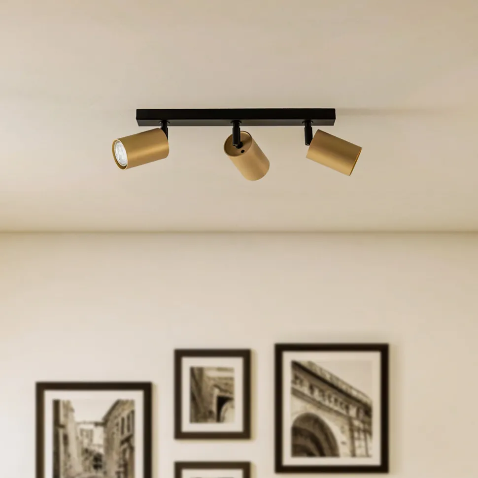 Downlight Zoom, 3 lyskilder, kombinerer stilig eleganse med funksjonell allsidighet. Denne spotlights er laget av høykvalitets stål og har en tiltalende kombinasjon av svart og gull som gir ethvert rom et spesielt preg. Enten i stuen, gangen, på kjøkkenet eller i spisestuen – denne spotlights setter accenter overalt og sørger for behagelig belysning. Muligheten for dimbarhet via en ekstern dimmer gjør det mulig å justere lysintensiteten individuelt og dermed skape den ønskede atmosfæren.
