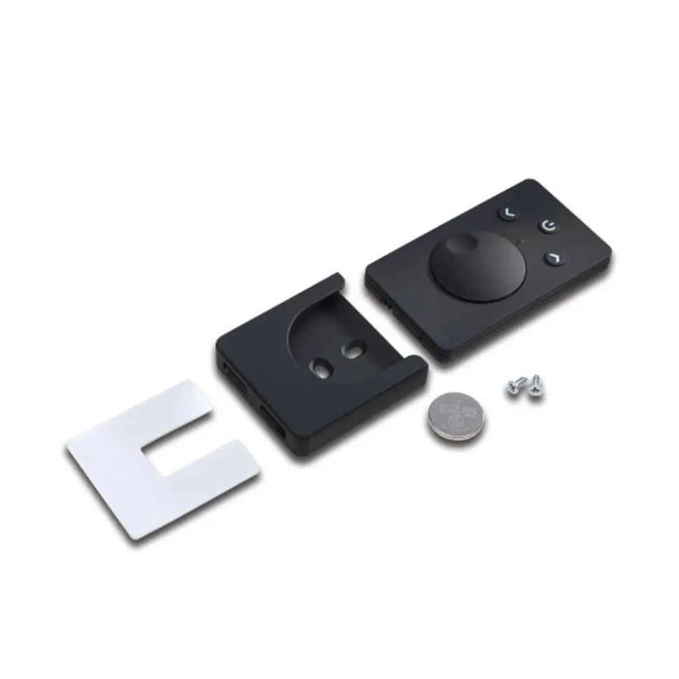 Radiofjernkontroll for Dynamic-kontroller – med veggfeste Denne radiofjernkontrollen brukes til å slå på, dimme og styre lysfarge. Den krever en Dynamic-kontroller (ikke inkludert), som kobles til kompatible armaturer via en 24 V DC Dynamic-plugg. Inkluderer CR2032-batteri og veggbrakett for skruing eller klistring.