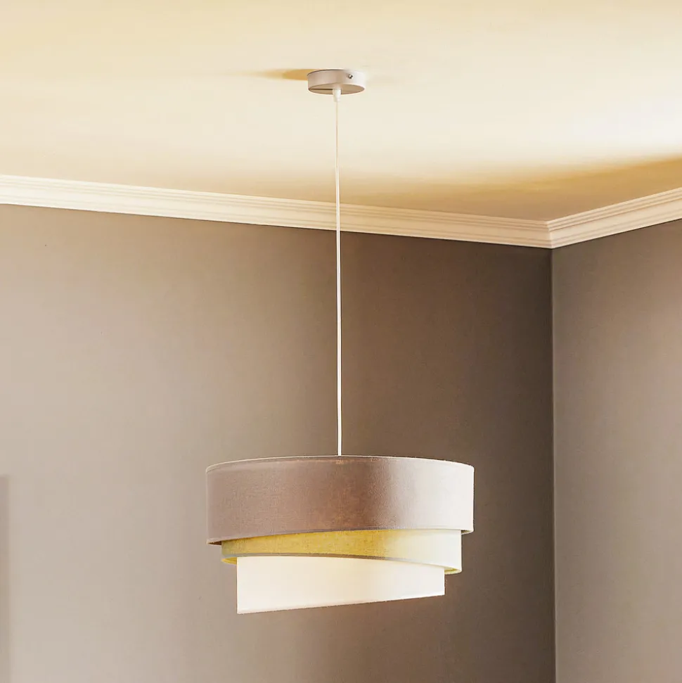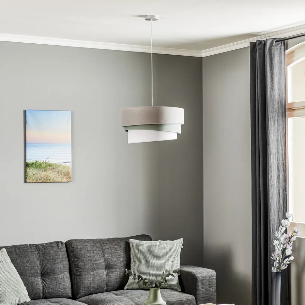 Euluna Trio hengelampe kombinerer moderne design med en harmonisk fargesammensetning av beige, akvamarin og ecru. Lampen er laget av høykvalitets bomullstekstil og passer perfekt inn i ulike hjemmemiljøer som stuer, kjøkken, soverom og spisestuer. De myke fargenyansene skaper en innbydende atmosfære og setter stilfulle aksenter i alle rom.