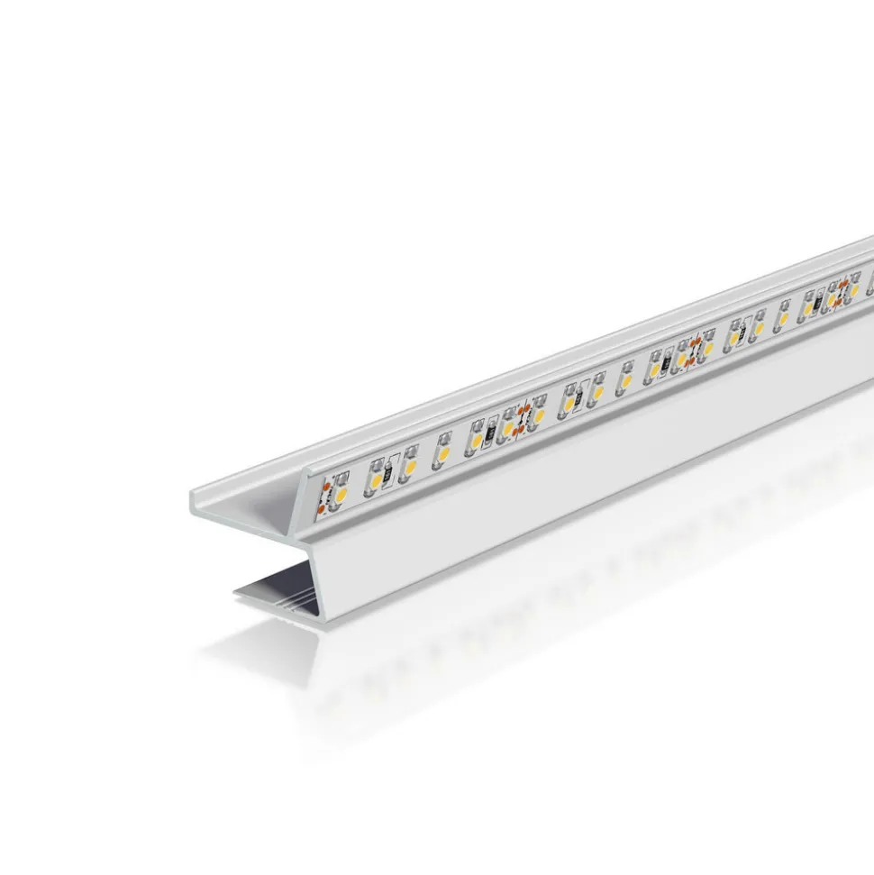 Aluminiumsprofilen APTBU muliggjør indirekte belysning gjennom veggen. Den er egnet for gipsplater med en tykkelse på 12,5 mm og LED-striper opp til 12 mm brede og maksimalt 30 W per meter. Etter installasjon er LED-stripen ikke lenger synlig fra rommet. Den nedre kanten av profilen er fylt med gipsplater og stoffinnsats over et stort område. Avstanden mellom gipsplater og tak skal ikke overstige 8 cm. Kanten av profilen kan males med fargen på omgivende vegg / tak / kledning. Den effektive fri strålevinkelen på lyset er 120 °; jo større avstand til veggen (anbefaling: 6 til 15 cm), jo høyere er den opplyste delen av veggen.