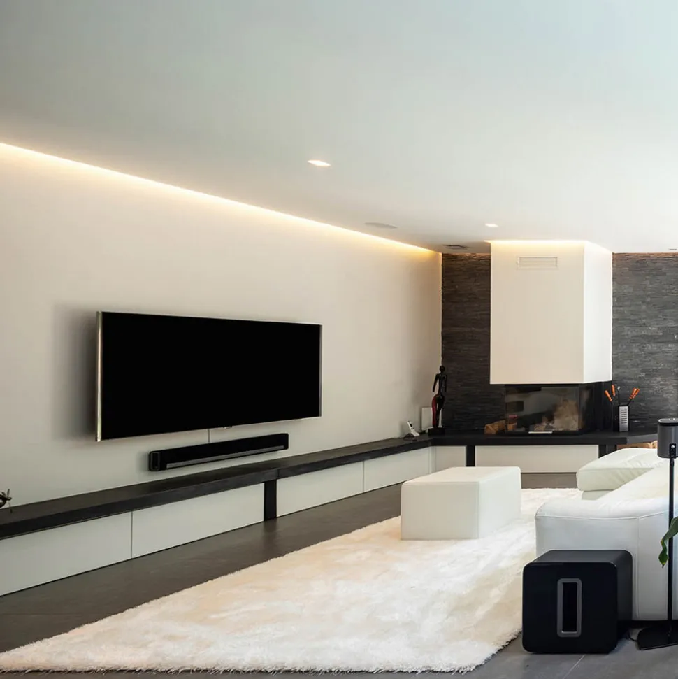 APTBU gipsprofil laget av aluminium for vikebelysning, vendt mot veggen