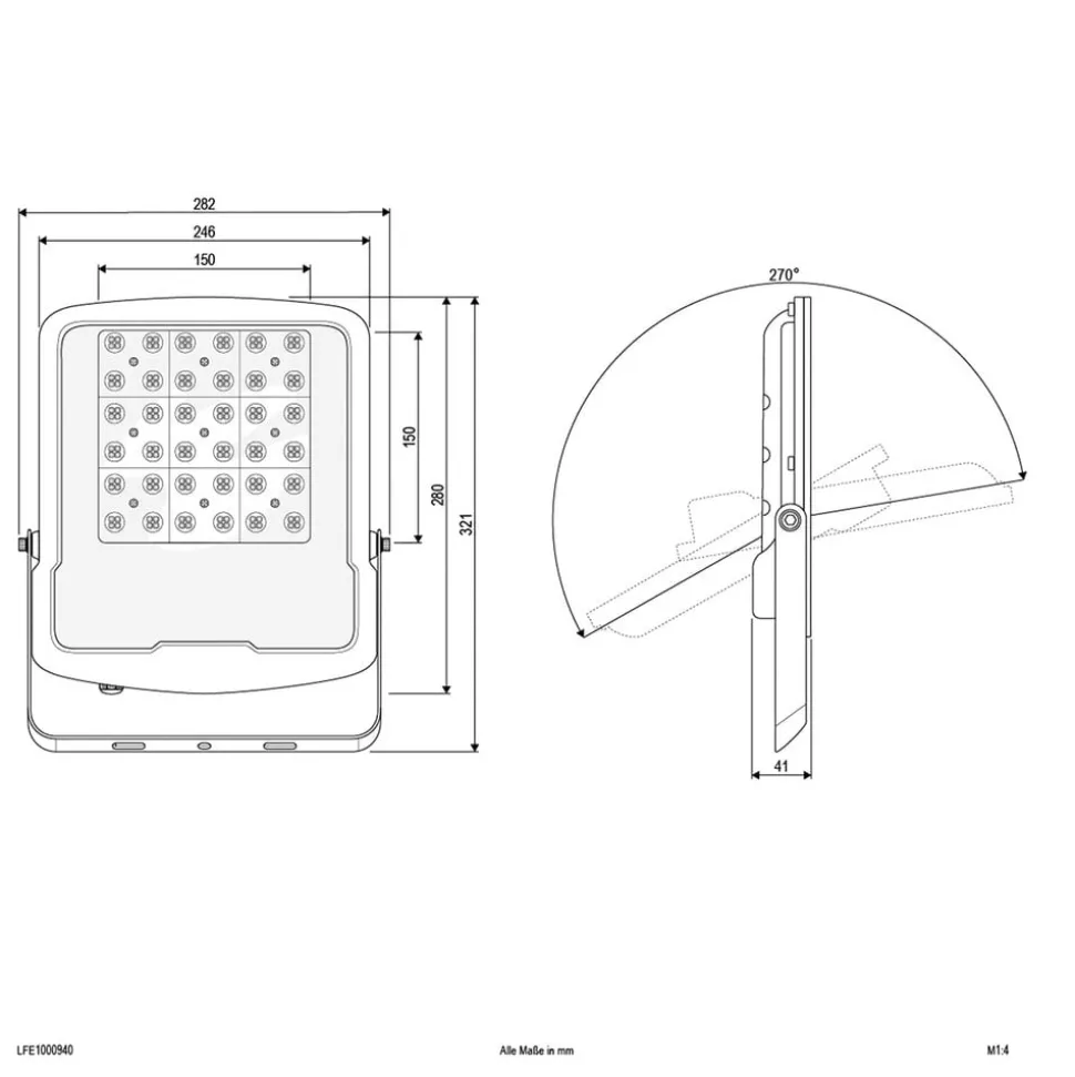 Den flate LED-utendørs spotlighten Panthera består av et aluminiumshus med svart pulverlakk, et deksel i klart glass og skruer i rustfritt stål. LED- lyskaster er ideell for å belyse store områder, på uteområder som i produksjonshaller og lager. Takket være festebraketten er innretting under montering mulig; Panthera kan festes til vegger, tak, plattformer, gulv og skinner på en rekke måter.