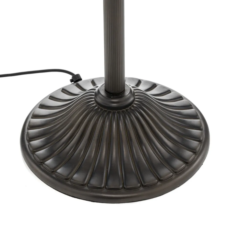 Emily gulvlampe i fortryllende Tiffany-lookGlassskjermen i Tiffany-stil er prydet med en bred kant av rosa og fiolette roser flettet sammen med blader og grener. Dette gjør Emily-gulvlampen til en usedvanlig attraktiv gulvlampe som fortryller ethvert miljø med sitt romantiske lys.Emily-gulvlampen er utstyrt med to knapt synlige trekkbrytere for separat veksling av belysningen.