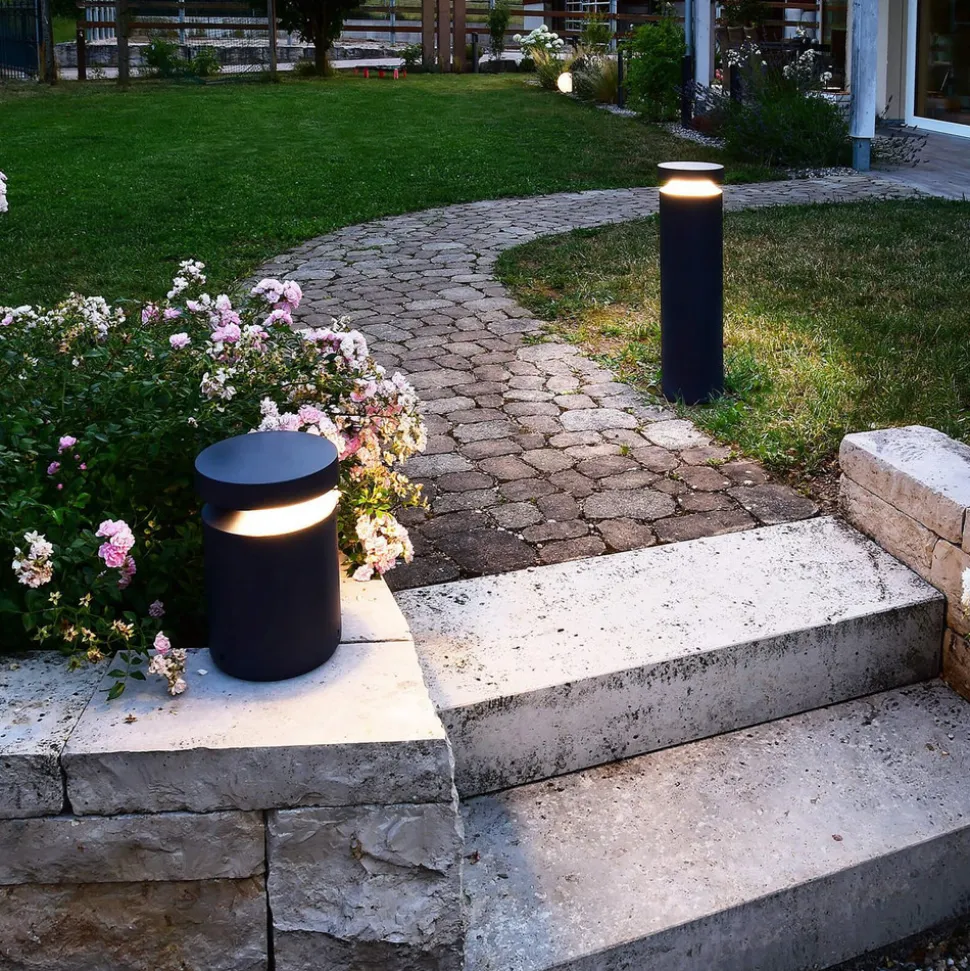 Mørkegrå Faro LED-gatelampe i aluminium Faro LED-gatelampe i formstøpt aluminium i elegant mørkegrå farge sørger for blendingsfri lysfordeling og en spesielt stor lyskegle med en diameter på opptil 10 meter takket være design (mer enn 97 % nedadrettet lys) og linseoptikk. Armaturen er også DALI2 DT6-kompatibel, og ved behov kan Faro utstyres med en valgfri avskjerming (se tilbehør) for å belyse områder fra kun én side. IP68-tilkoblingsboksen med mulighet for gjennomgående kabling og det smussavvisende pulverlakkeringen gjør veilampene til et holdbart og kvalitetssikkert valg for utendørs belysning.