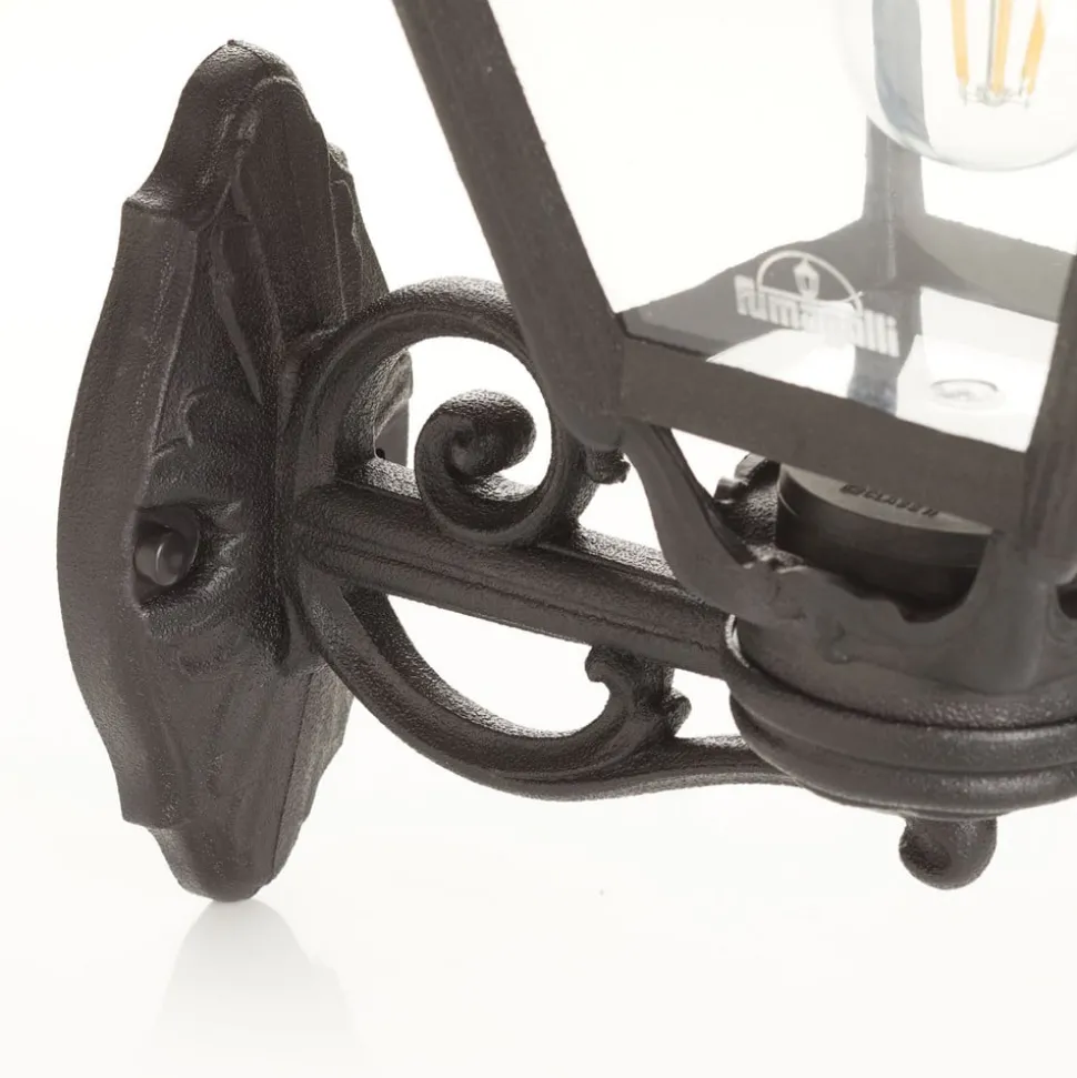 Golia LED-vegglykten er utstyrt med moderne materiale og utskiftbare LED-glødelamper i en behagelig kontrast til det antikke utseendet til denne dekorative lyskilden. Materialet som brukes er en robust plast (polyresin), som er motstandsdyktig mot effekten av UV-stråler, LED-lyskilden er inkludert. Effektiv fasadebelysning når det gjelder lysutbytte og dekorativ verdi. Laget i Italia.