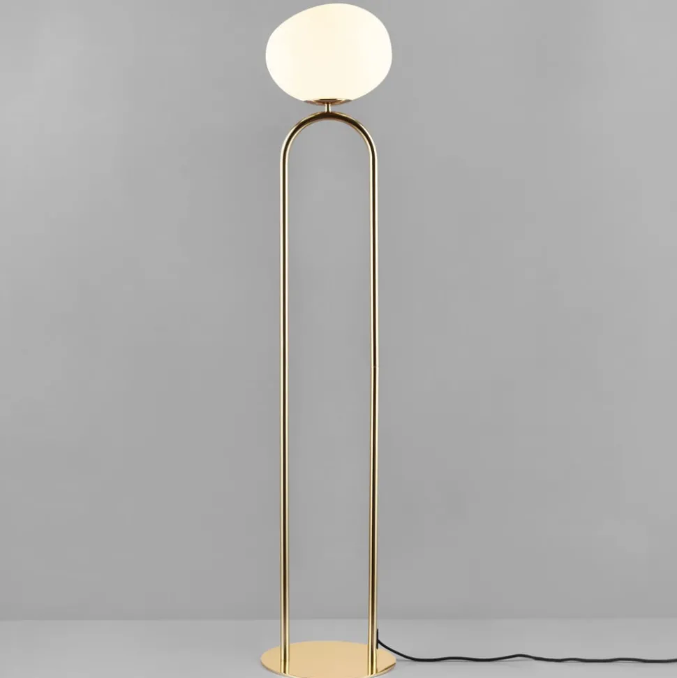 Gulvlampe Shapes med glasskjerm, hvit/messing