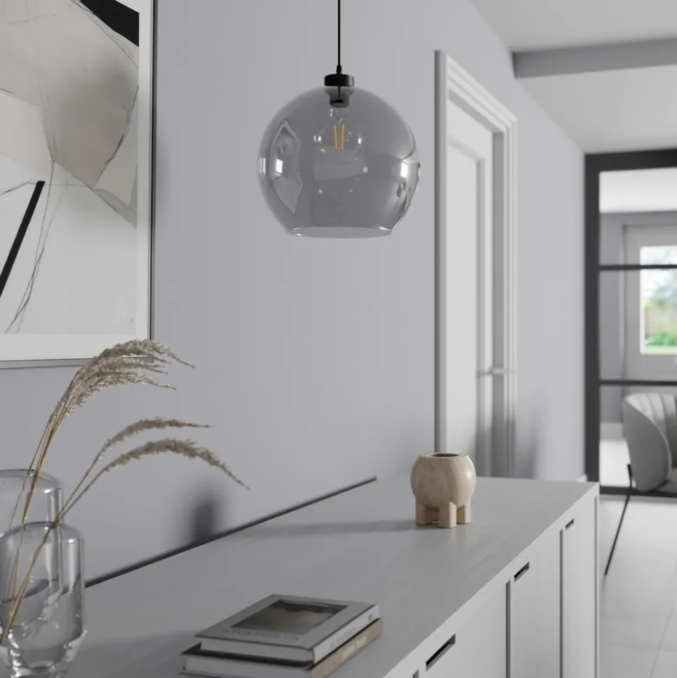Hengelampen Cubus kombinerer moderne design med høykvalitetsmaterialer og setter stilfulle aksenter i alle rom. Den er laget av glass og metall og imponerer med sin røykgrå, transparente farge, som i kombinasjon med svarte elementer utstråler tidløs eleganse. Denne lampen er ideell for stuen, kjøkkenet eller spisestuen og passer perfekt inn i ulike interiørstiler.