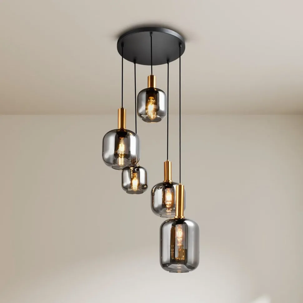 Hengelampe Fumo, røykglass, 5 lyskilder, sirkel