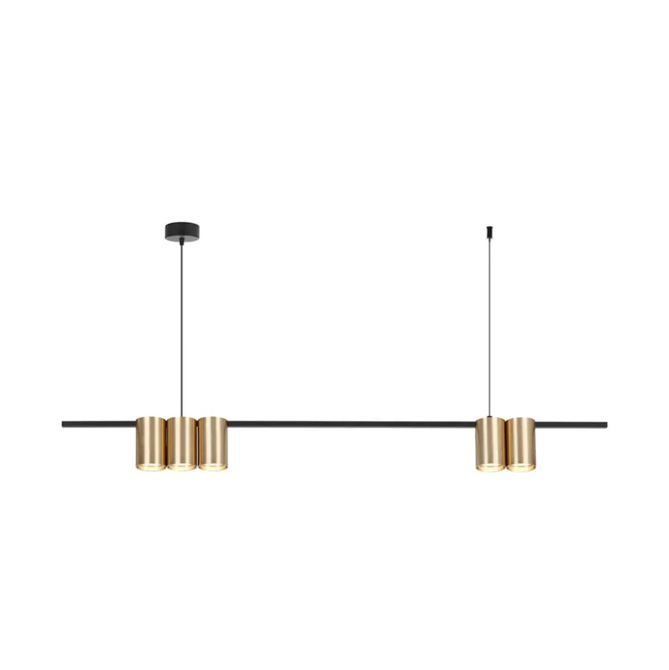 Hengelampen Genesis kombinerer moderne design med en stilig farge i svart og gull. Den er laget av høykvalitets aluminium og passer perfekt inn i ulike interiørstiler, samtidig som den setter elegante aksenter. De fem GU10-fatningene gir en fleksibel belysningsløsning som skaper en behagelig atmosfære både i stuen, spisestuen, kjøkkenet eller på kontoret.