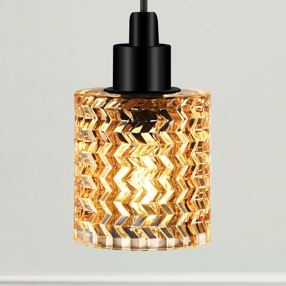 Den sylindriske skjerm til Hollywood-hengelyset er laget av gjennomsiktig glass med en mangesidig design. Den elegante lampen i retro-design er perfekt for å belyse små bord, men en kombinasjon av flere lamper – montert på rad eller i en sirkel – er ideell for å belyse en teller eller et større område. Kombinasjonen av ulik tonede eksemplarer fra Hollywood-serien er spesielt dekorativ.