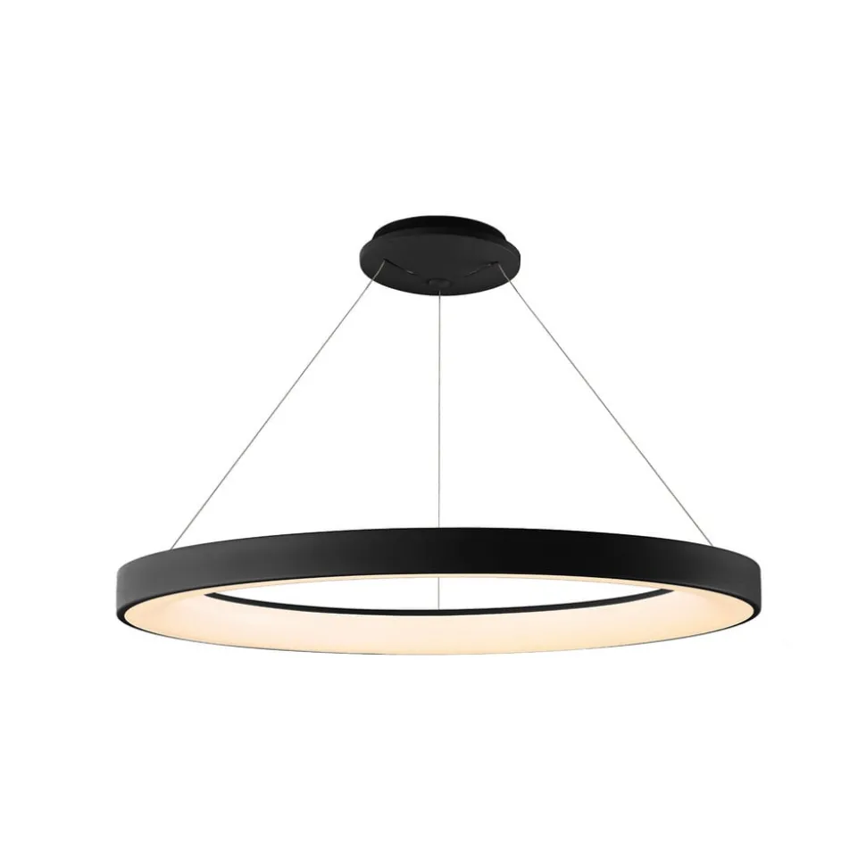 Niseko II LED-pendellampe med CCT-lysstyring og fjernkontroll Skjermen på Niseko II LED-pendellampen er formet som en ring. Den henger fra den runde baldakinen på tre kabler og har et satengsatt akryldeksel på innsiden, som lyset fra de innebygde LED-lampene sendes ut homogent gjennom. Armaturen leveres med fjernkontroll og gir fleksibilitet i belysningen, ettersom lyset kan velges fra varmhvit til universalhvit og dimmes trinnløst takket være CCT-lysstyring. Alternativt kan lyset styres via smarttelefonen ved hjelp av den gratis Mantra-appen som er tilgjengelig for Android og iOS. Hengelampen er en fleksibel lyskilde for spisebordet, stuen eller kjøkkenet, og den kjennetegnes av lang levetid og høy lang holdbarhet på antall tenn/slukk.