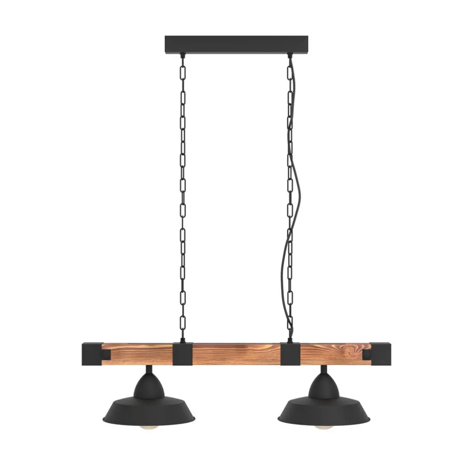 Hengelampe Oldbury, svart/mørkt tre, lengde 86 cm, 2 lyskilder.